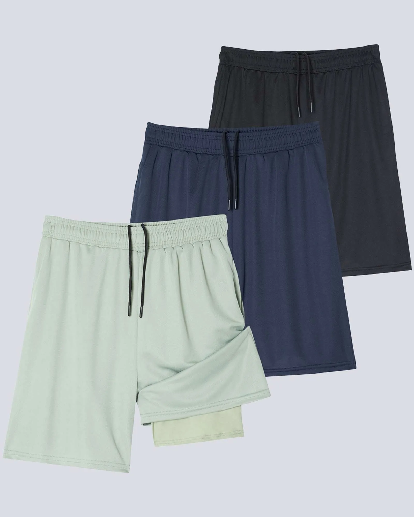 3 Pack: Men's 2-in-1 7 Running Shorts with Compression Liner (Available in Big & Tall)