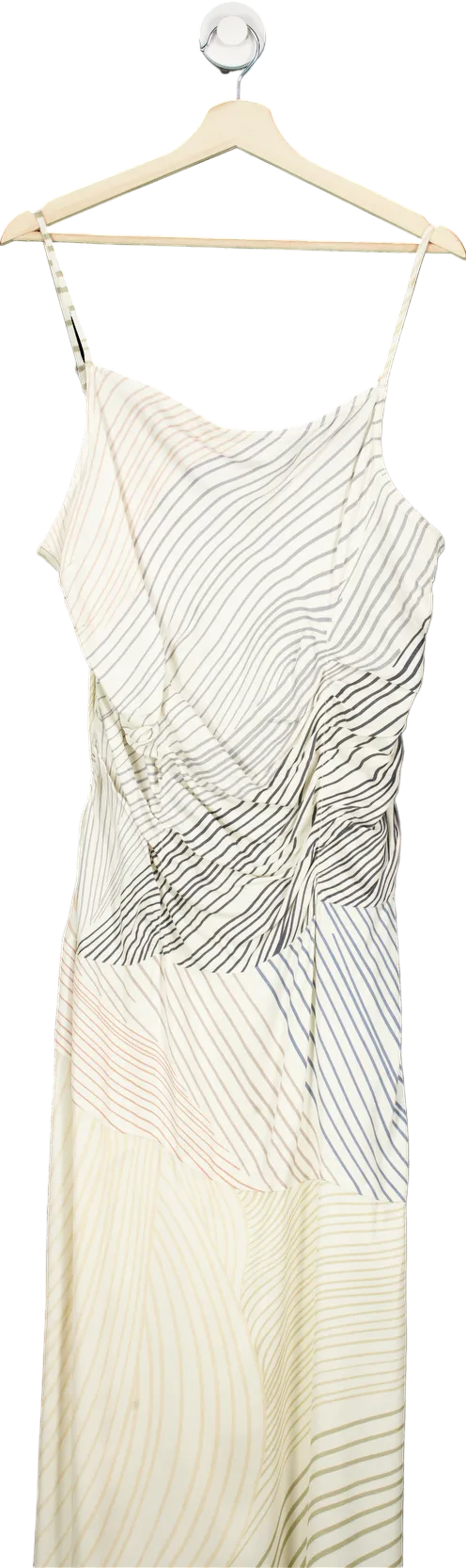 This elegant maxi dress from {Conditions Apply} features a stunning abstract striped pattern in a mix of white and black hues. Perfect for summer outings or special occasions, its lightweight fabric ensures comfort and style. The dress has a fitted bodice with a straight neckline and spaghetti straps, draping beautifully down to a floor-length hem.