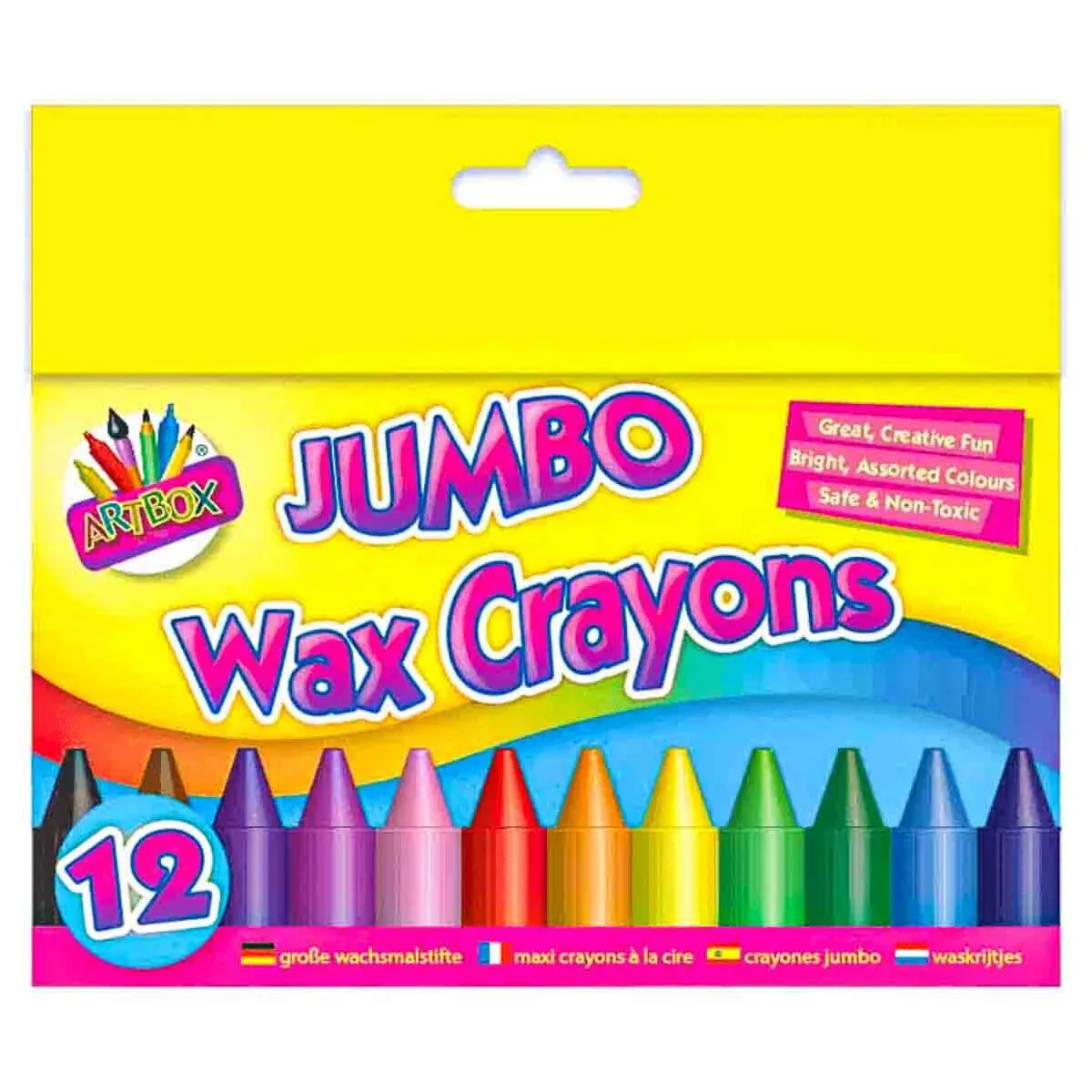 • Artbox 12 Jumbo Wax Crayons in bright assorted colours.