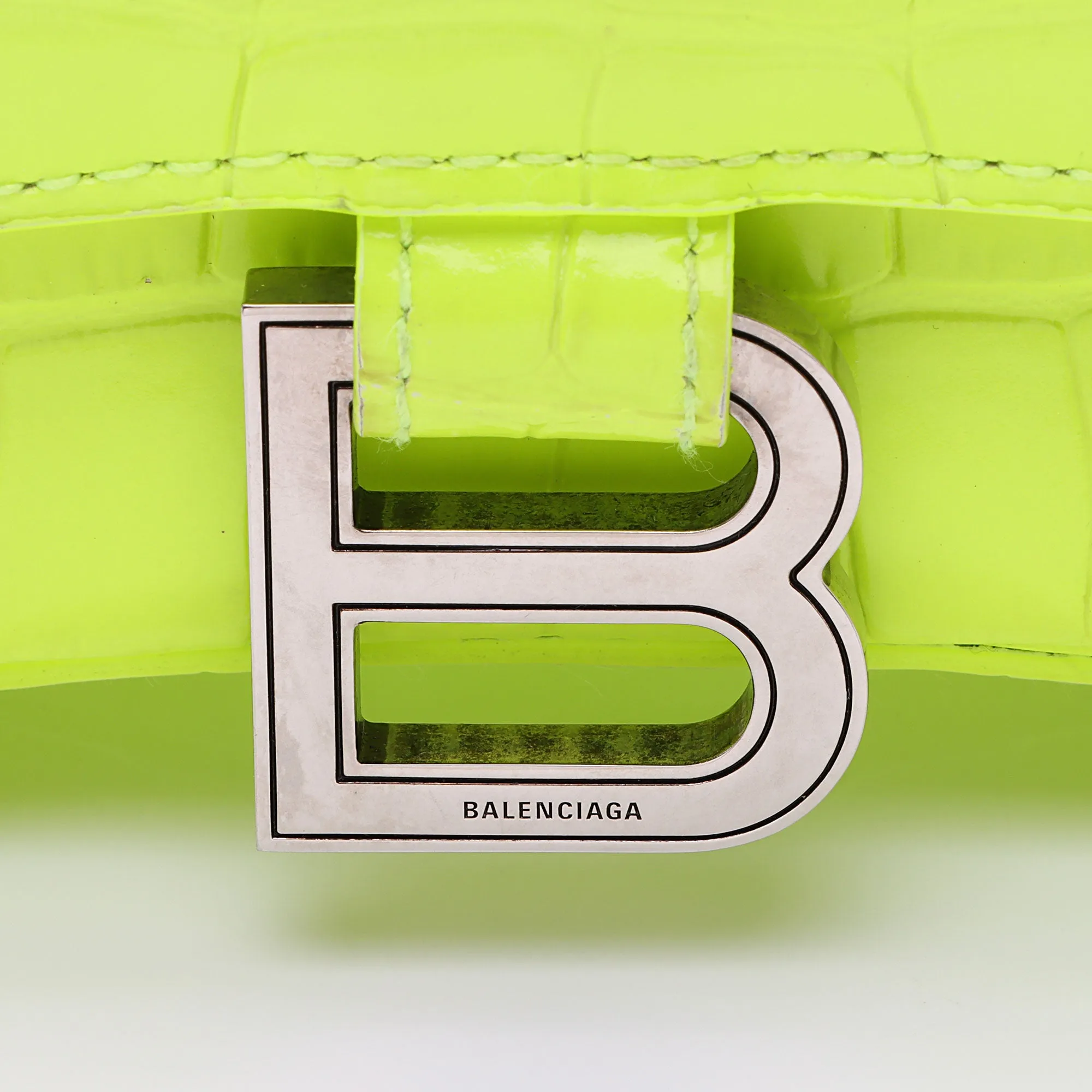 Balenciaga Shiny Croc Embossed Calfskin Hourglass XS Top Handle