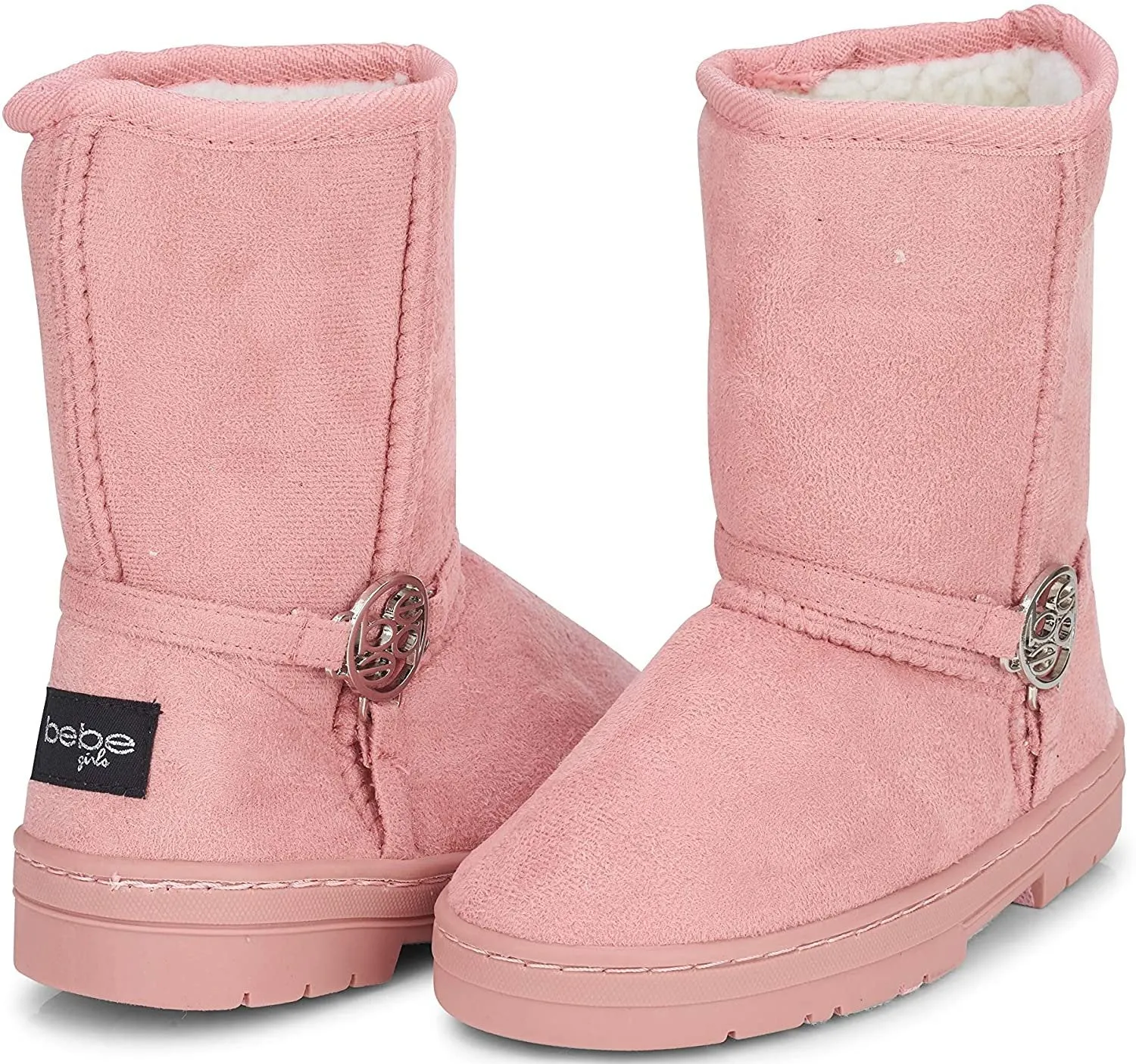 Bebe Girls’ Big Kid Slip On Mid Calf Microsuede Warm Winter Boots with Medallion Harness