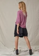 Our classic satin Tencel knee-length skirt allows for movement with flowing double material layers and an elastic ruched waistband.
