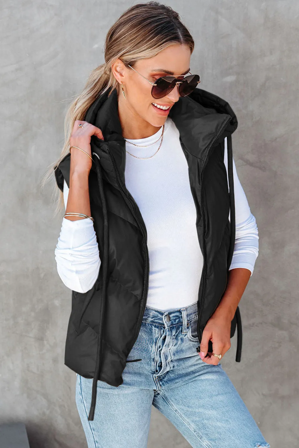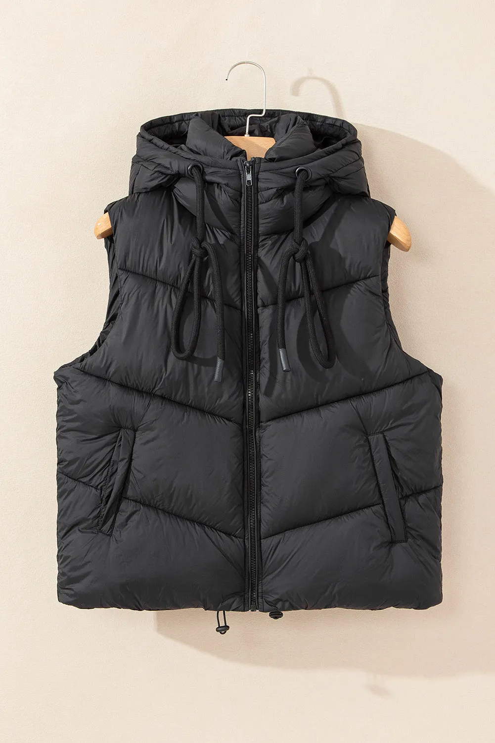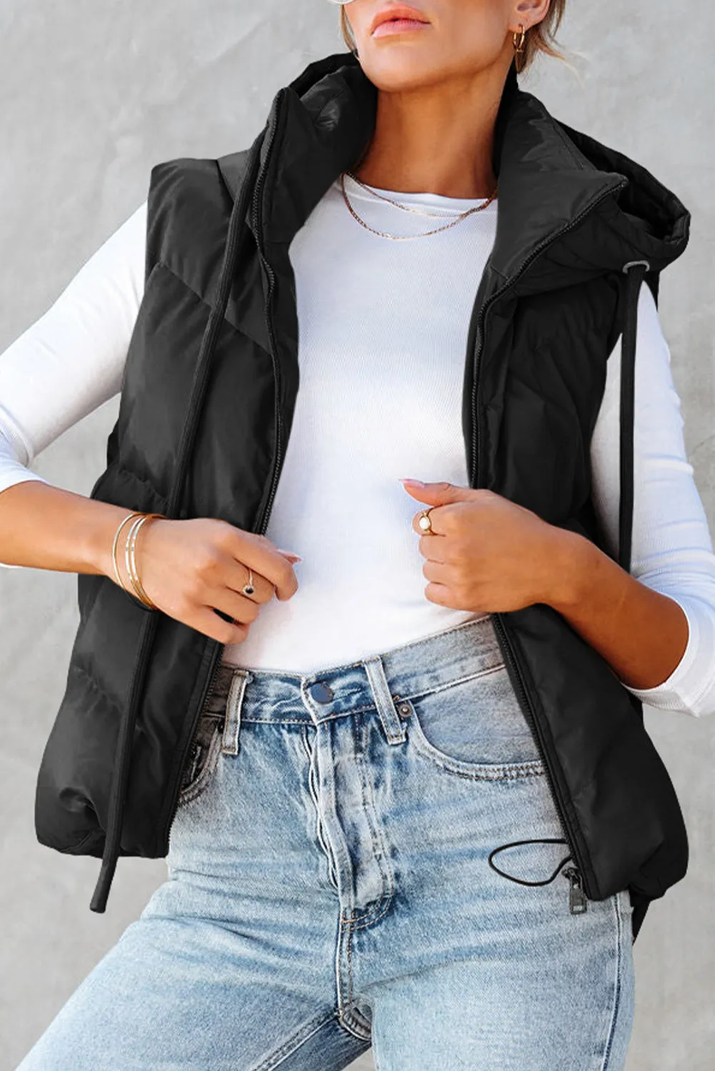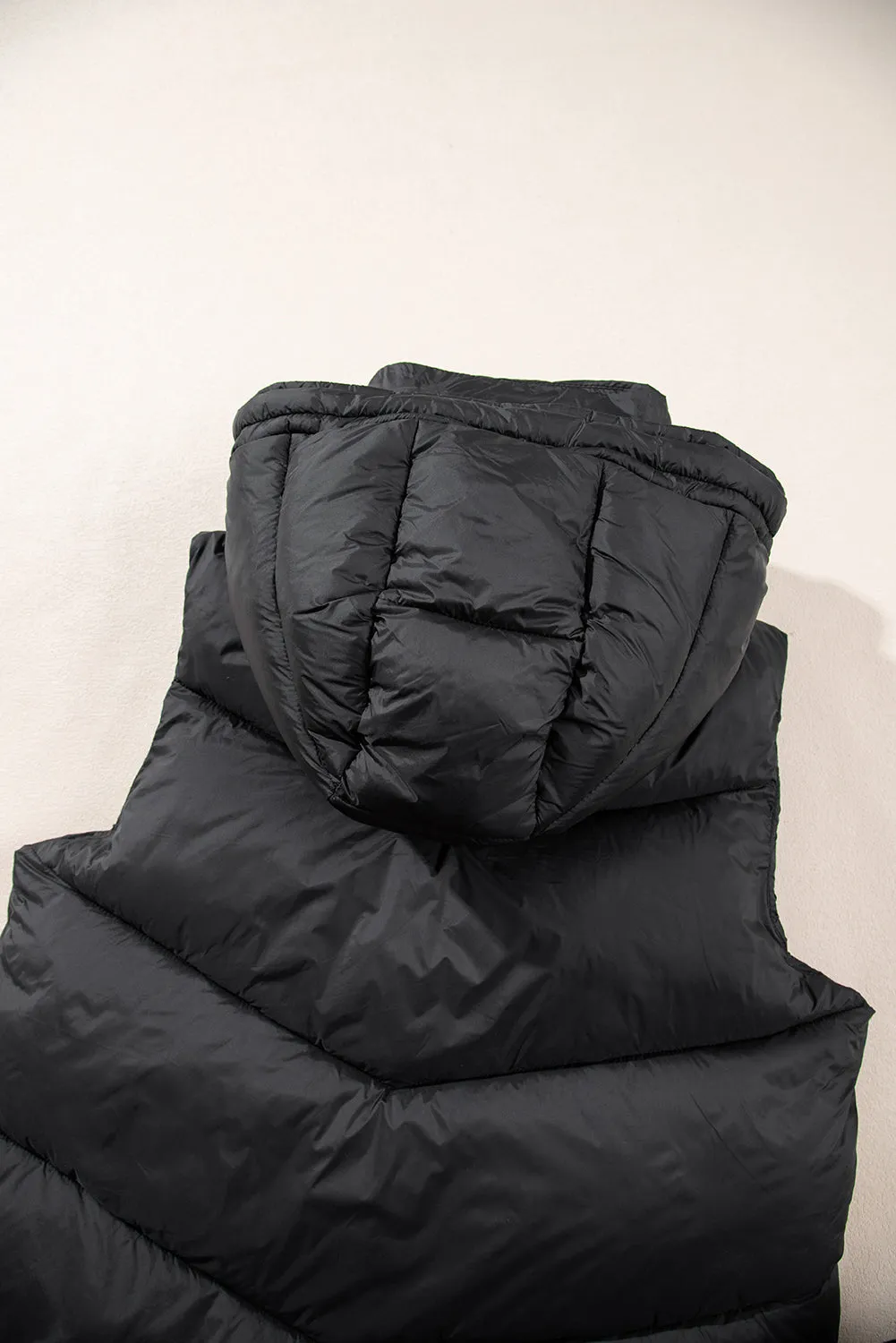 Elevate your winter wardrobe with this sleek quilted puffer hooded vest. Designed to blend style with functionality, this coat is the perfect addition to your chilly-day outfits.