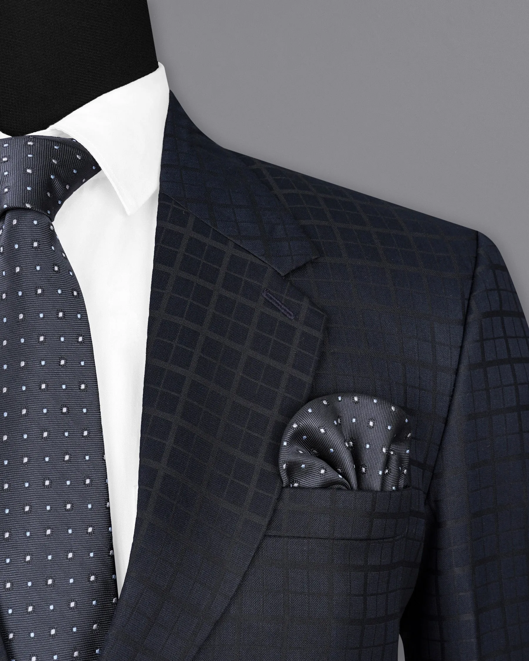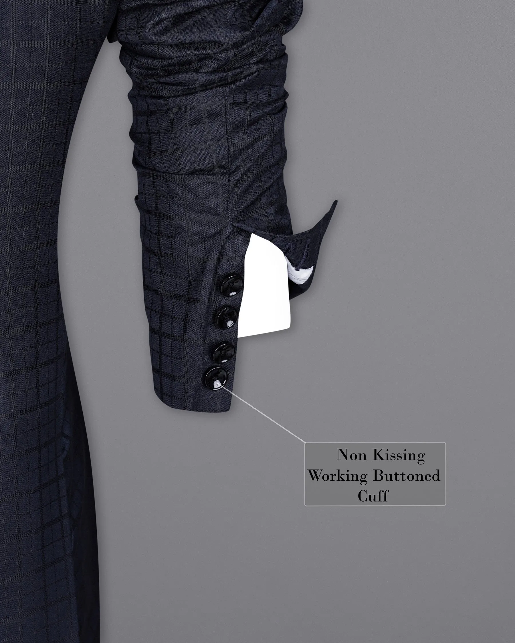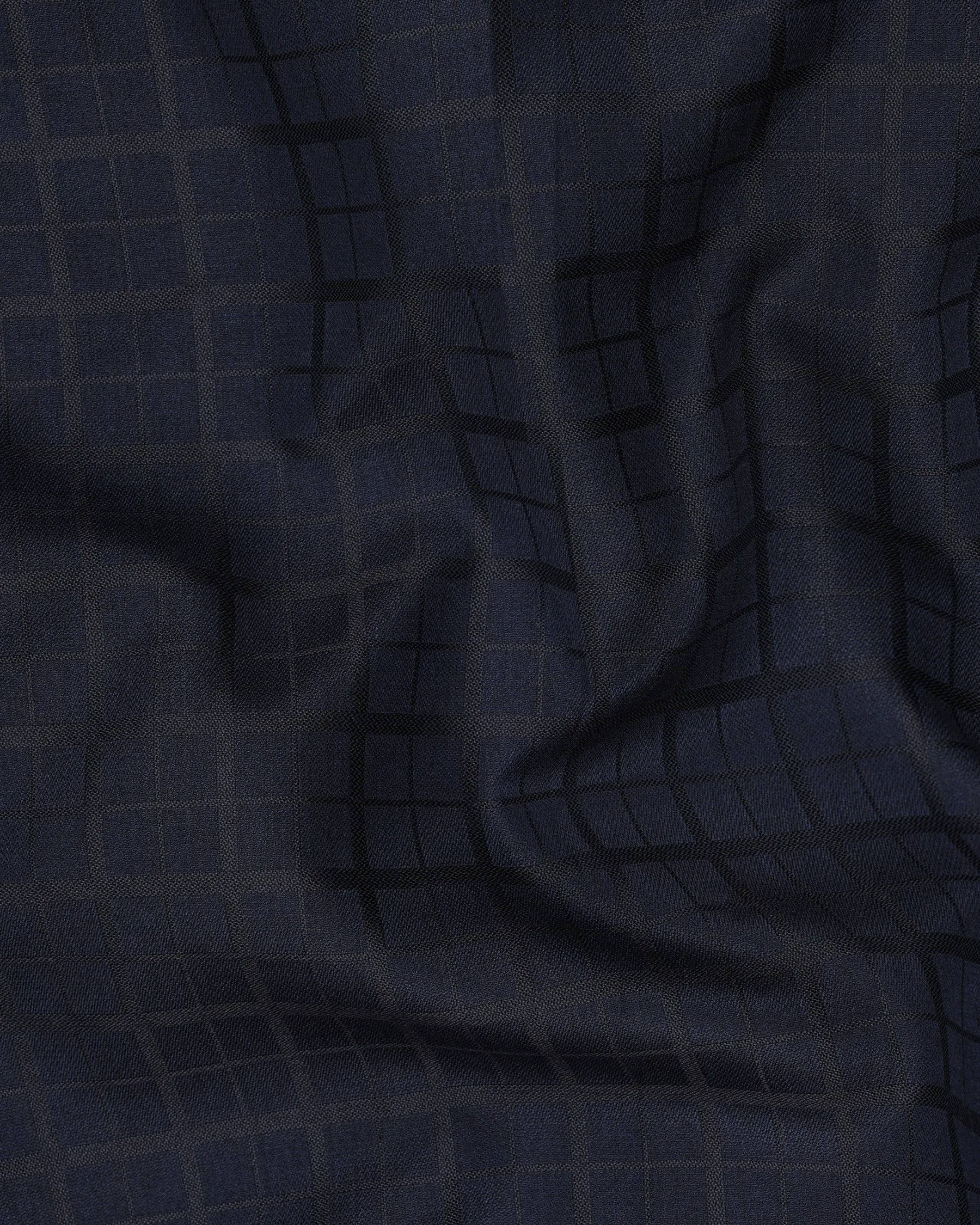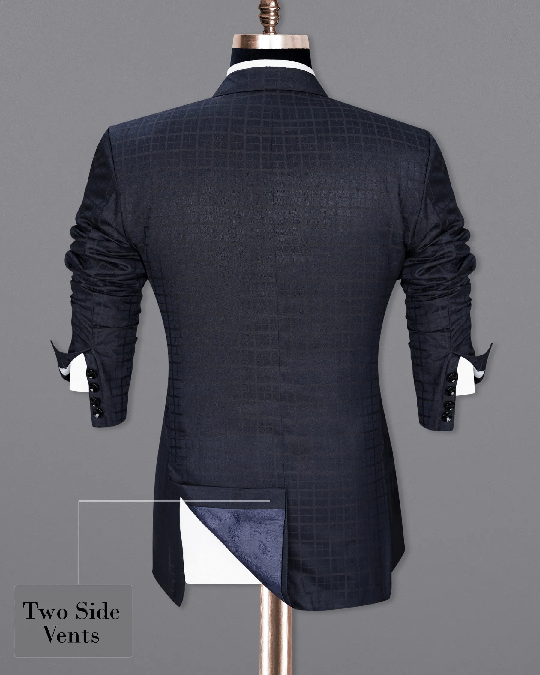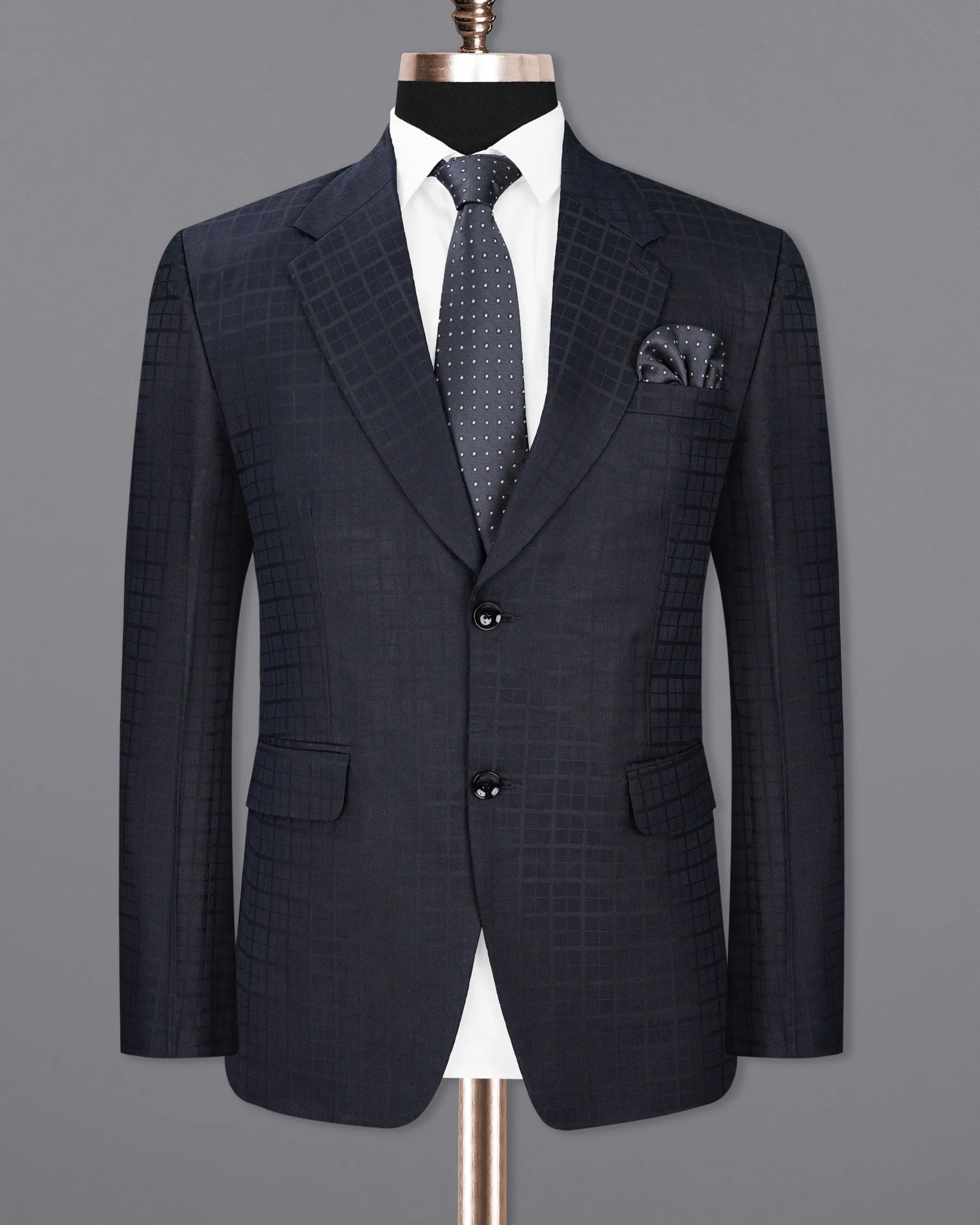 Bleached Cedar Navy Blue subtle Plaid Single Breasted Blazer