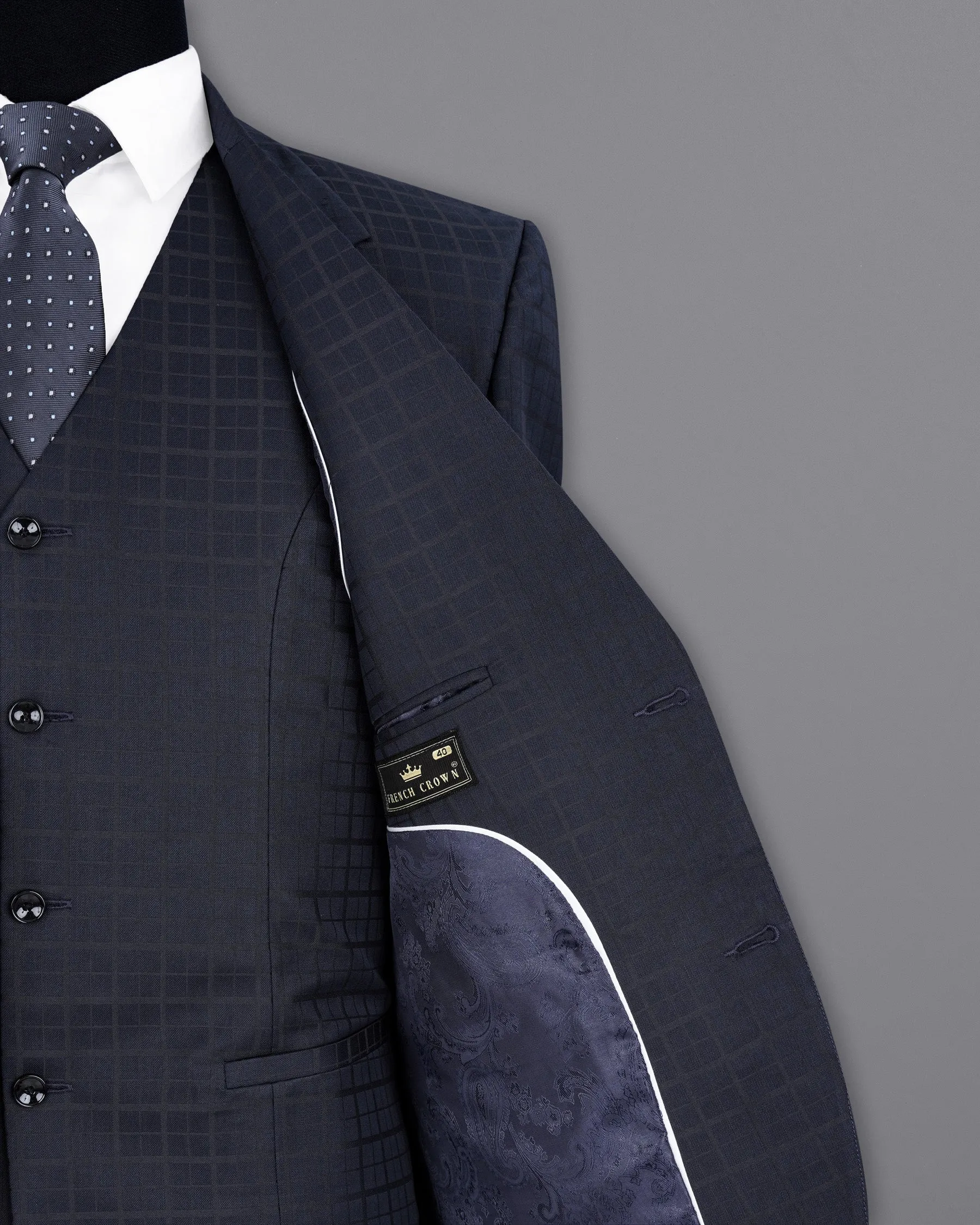 This refined blazer from French Crown comes with sartorial flair along with a plaid checkered pattern. This regular-fit blazer features a breast pocket with two side pockets for easy accessorizing. Round off the elegant look with a white or gray shirt, a matching tie, and oxford shoes.