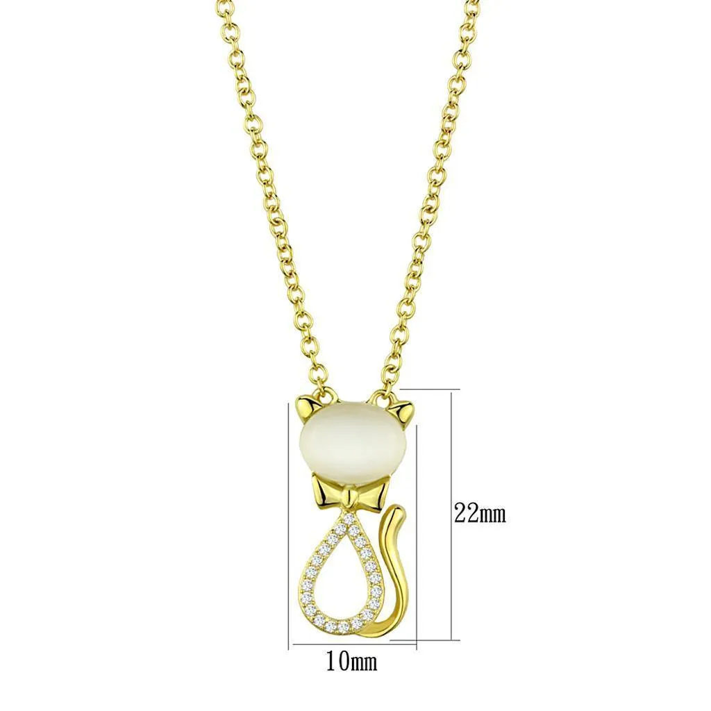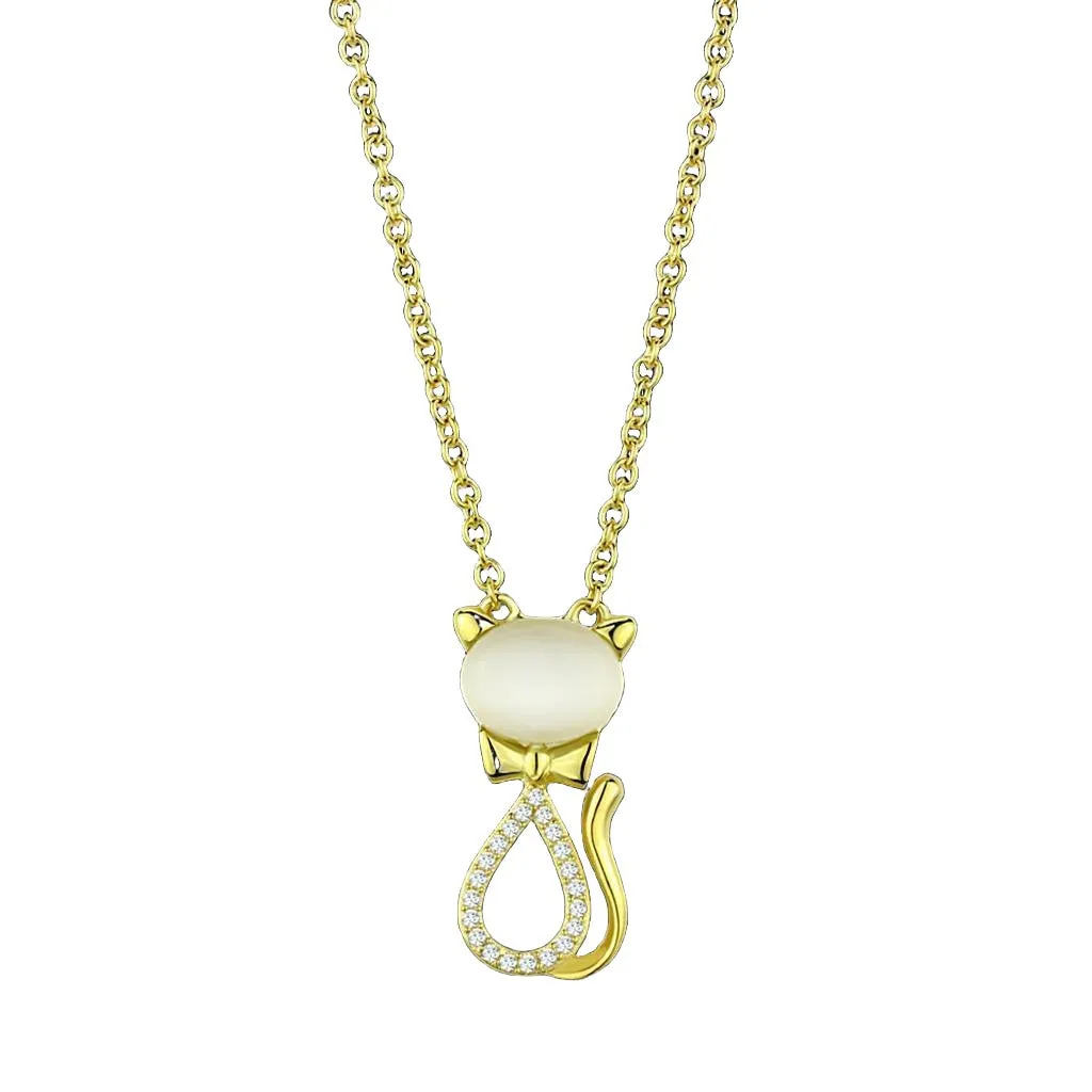 Chain Necklace Pendant Women's Chain - TS409 - Gold 925 Sterling Silver Chain Pendant with Synthetic Cat Eye in White
