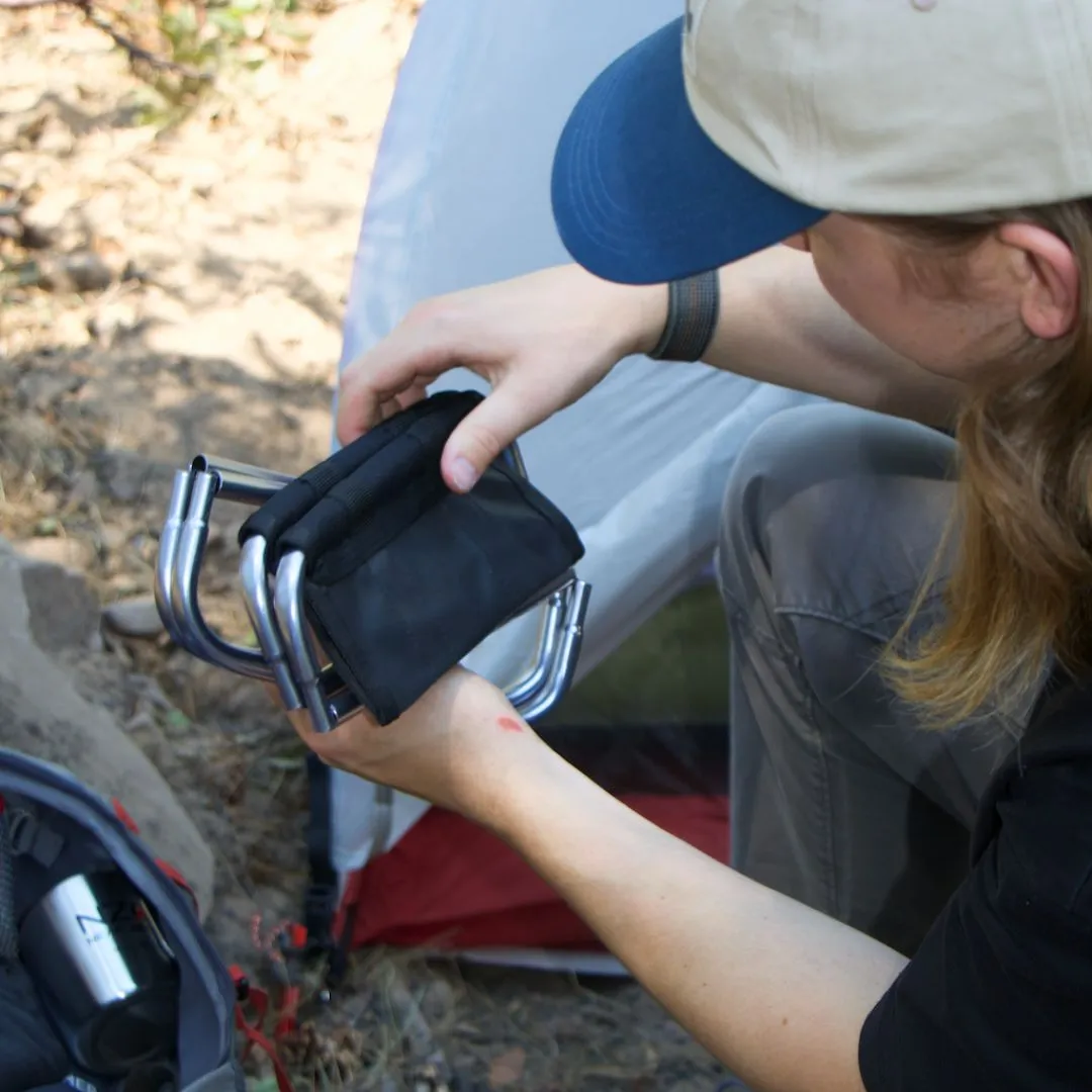 Introducing the Near Zero ultra-compact folding chair/stool. The perfect accessory for your next outdoor adventure, with its clever folding design, this stool is incredibly easy to set up and take down, making it a convenient and hassle-free addition to your outdoor gear. It's the ideal seating solution for camping, hiking, fishing, or any outdoor activity. Crafted from aluminum and sturdy oxford cloth, our stool is both durable and strong, with a weight capacity of up to 220 pounds.