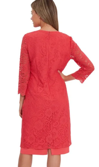 . Comes in 3 colours . Sleeveless . Straight skirt . Lace effect . Knee length