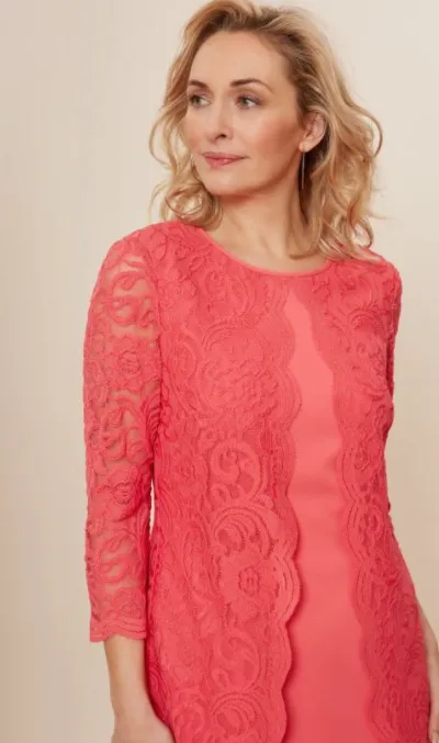 Hire this Gina Bacconi stunning crepe and lace dress. This perfect occasionwear to rent. The piece is comprised of a classic shift dress overlaid with a dainty floral lace. The lace features a scallop lace which adorns the front of the dress and the sleeve edge.The dress is fully lined and fastens using a concealed back zip. The perfect dress for a garden party or a wedding, or a day at the Races. Email our stylists: [email protected] Order up to 3 dresses to try on and choose between.