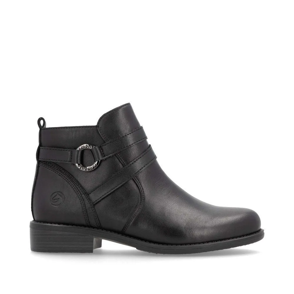 Monochrome vibes! These Remonte ankle boots for women made of smooth leather are the perfect everyday companion in midnight black. The zipper means the shoe can be put on very quickly. The round decorative element on the side adds a fresh accent. The light and cushioning sole with block heel, together with the removable and padded insole, creates a feeling of well-being with every step.