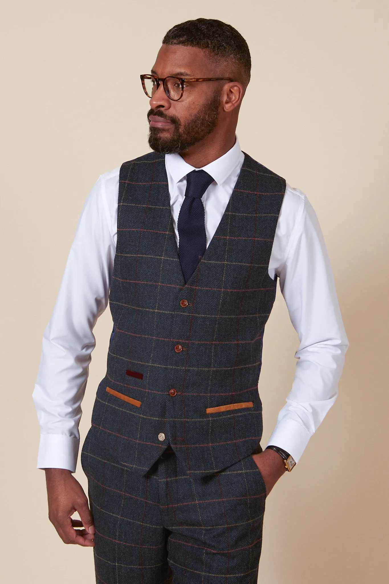 Opt for a timeless design this season with this Eton waistcoat bursting with vintage appeal and practicality. Created using a herringbone weave of rich wool mix material, thiswaistcoat will successfully stand the test of time. Ideal forcountryside wedding wear.