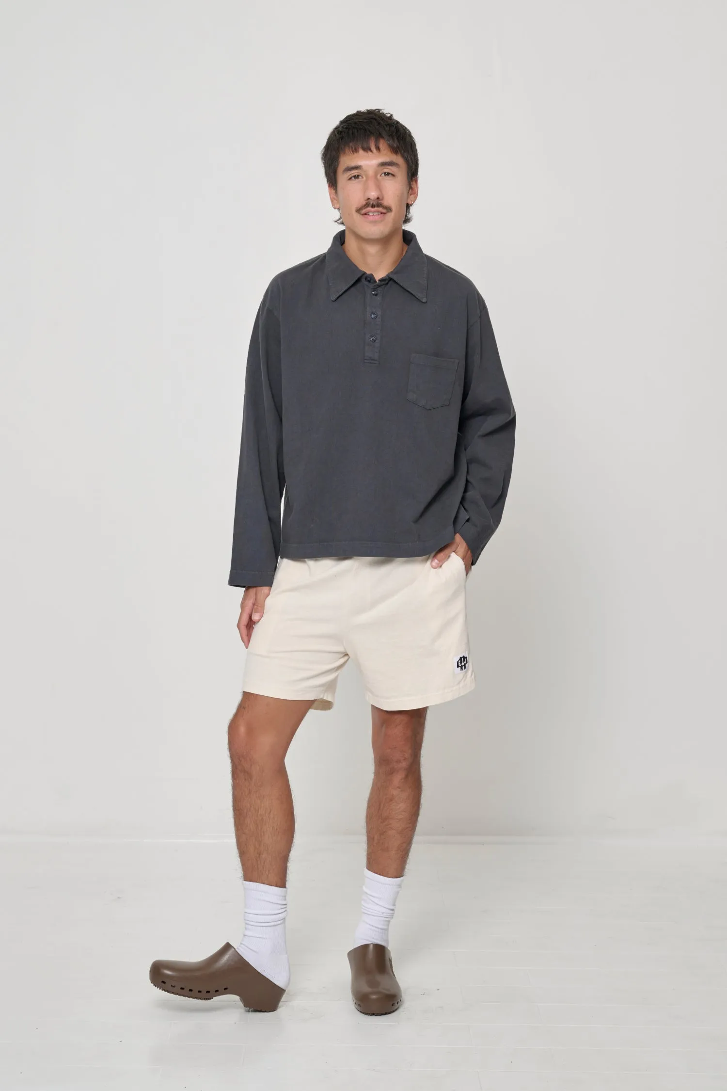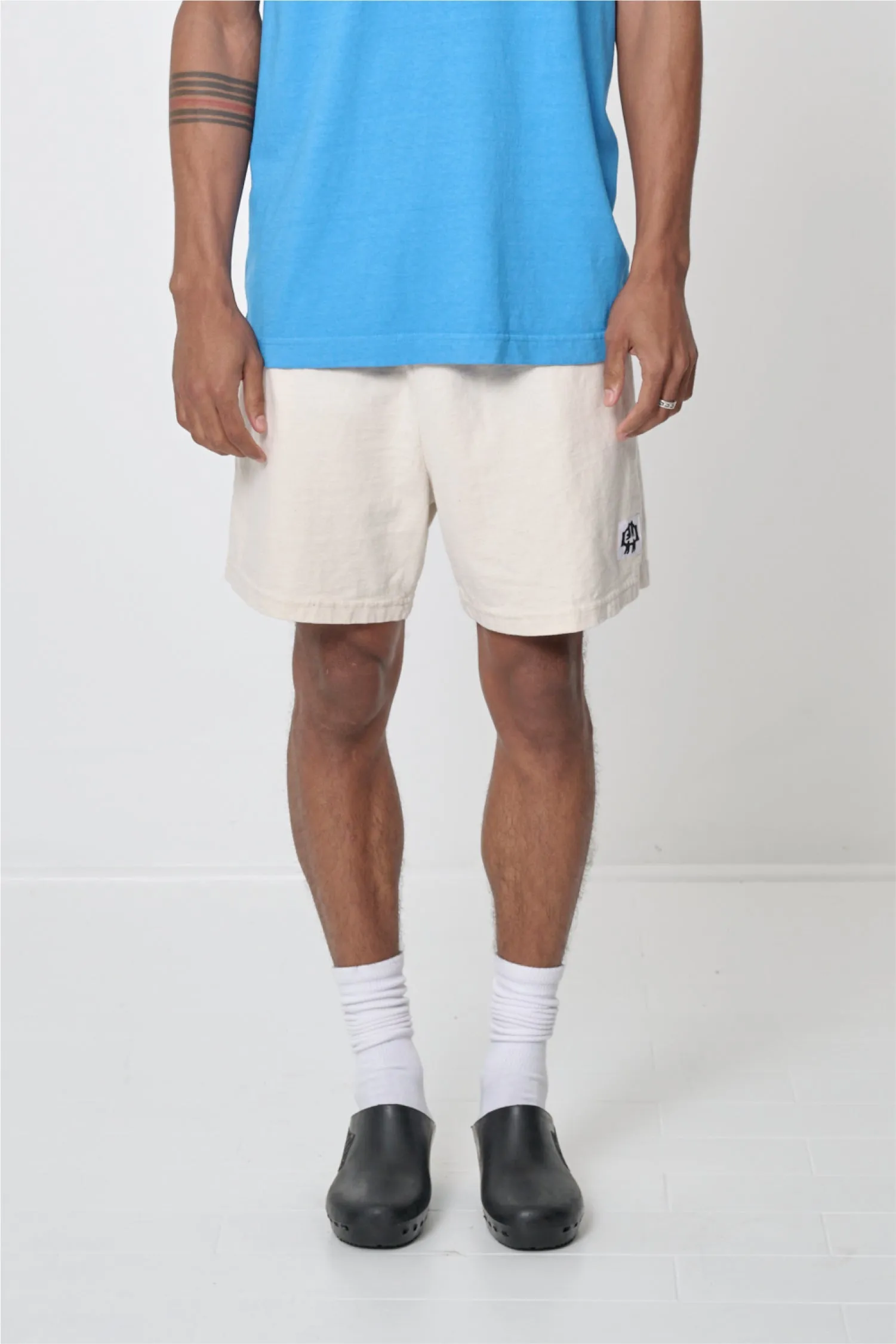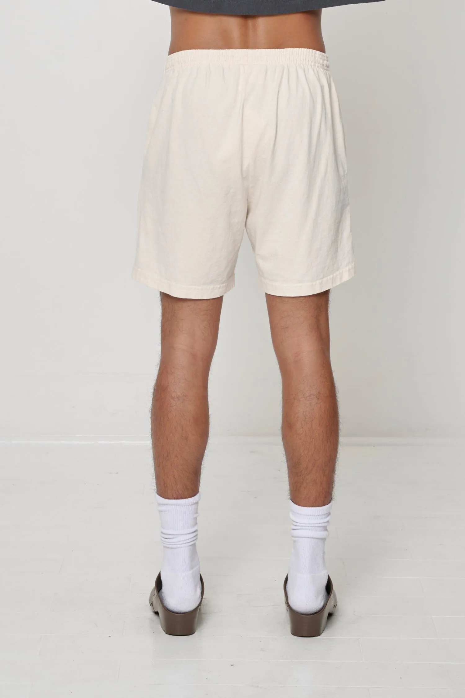 Modestly mid-thigh with an easy, breezy fit. Featuring an elastic waistband with an inside drawcord and deep side pockets.
