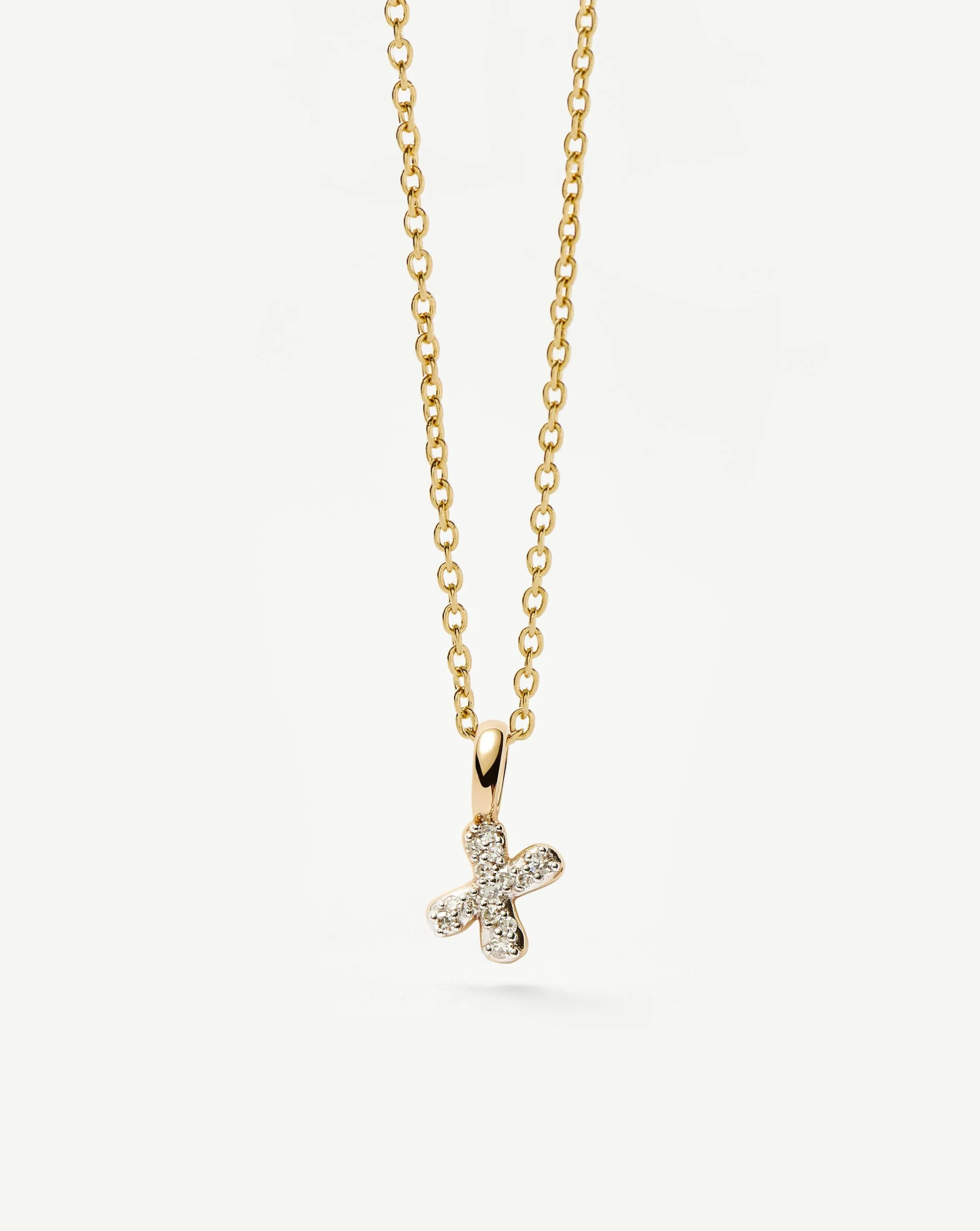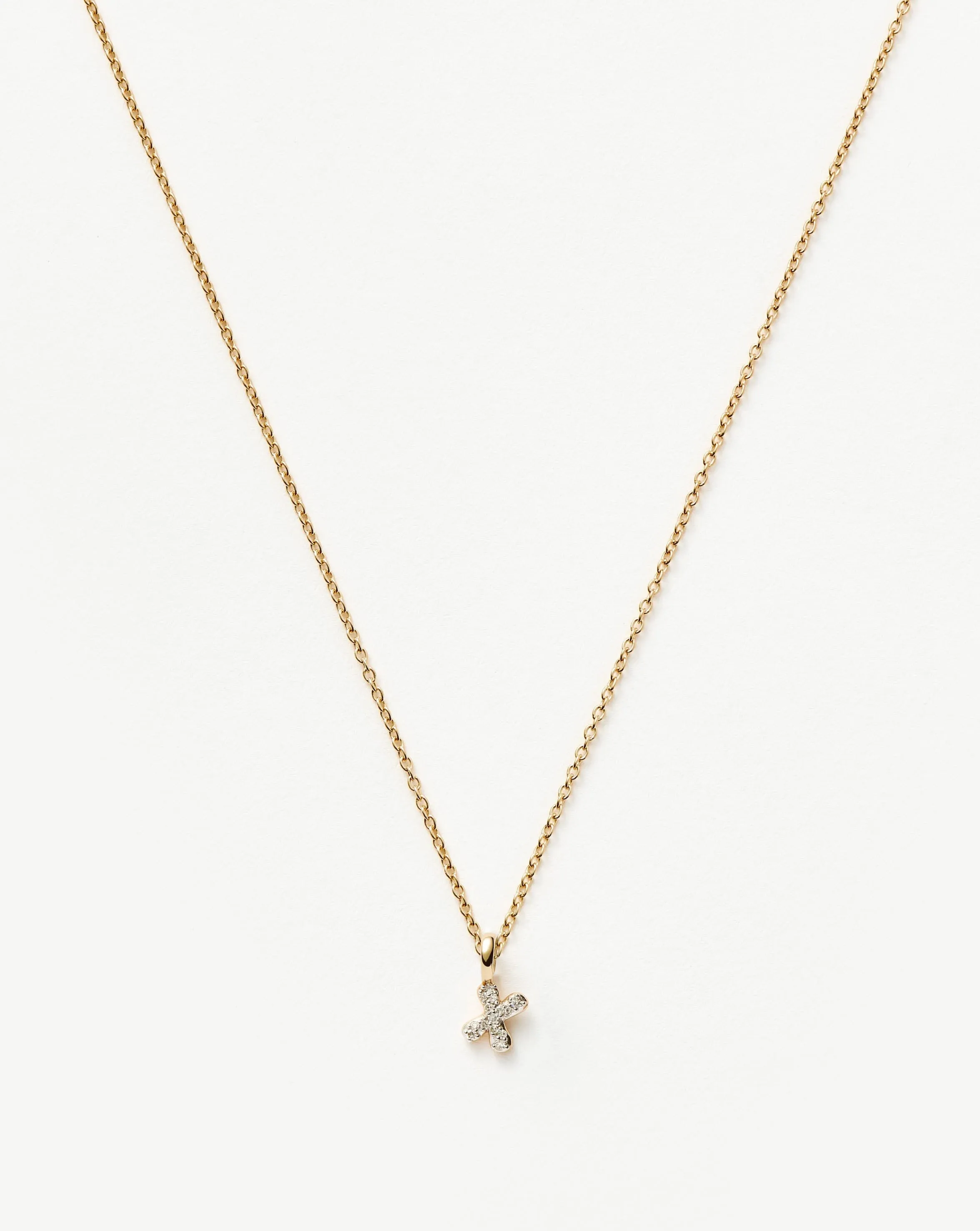Spell it out in solid gold with a mini initial pendant necklace, featuring your chosen letter in a soft hand-drawn font and pave set white diamonds. A forever layering piece, keep it for yourself or give as the ultimate personalised gift.
