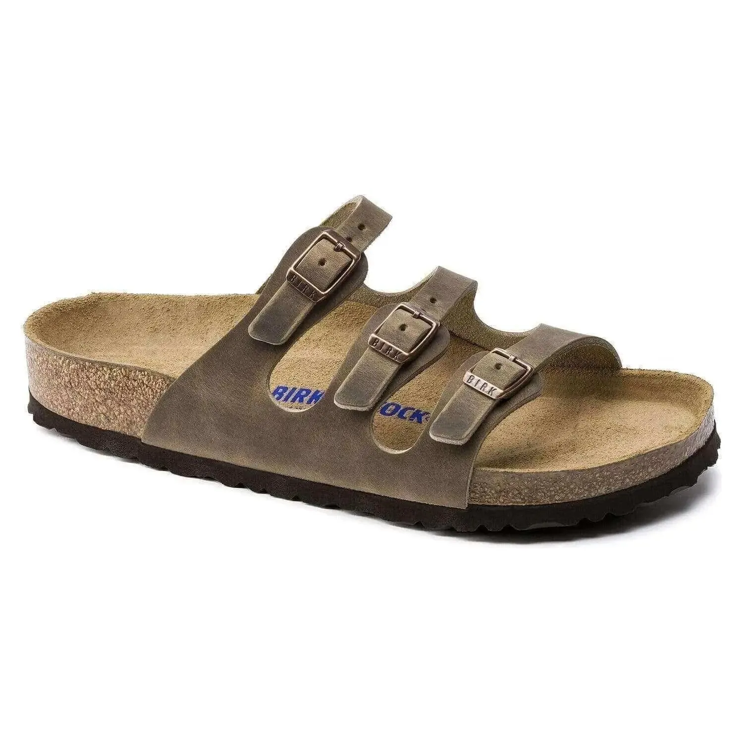 Strappy style meets signature comfort. The Florida slide features three slender, adjustable straps and a contoured cork footbed that forms to the shape of your foot.
