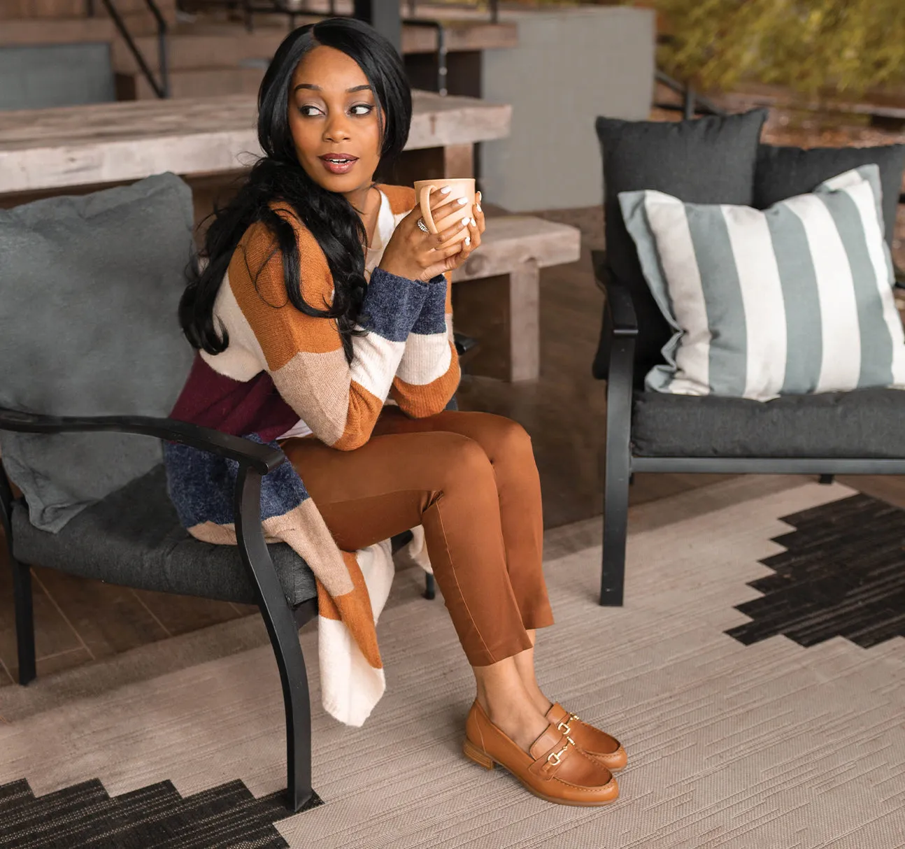 This Style is Final Sale and Not Eligible For a Pre-Paid Return Label. Please Read Our Before Making Your Purchase. A sleek style you can wear with anything; the ultimate neutral shoe. Dress up in a maxiskirt or casual with baggy jeans or leggings; all you do is step in and go. Gryffin has a moc-toe, saddle, and ornamental bit on a natural latex rubber outsole with Leawood insert for a stacked heel. Fit and comfort are provided with our contoured removable footbed, designed to stabilize your arch and gently cup your heel.