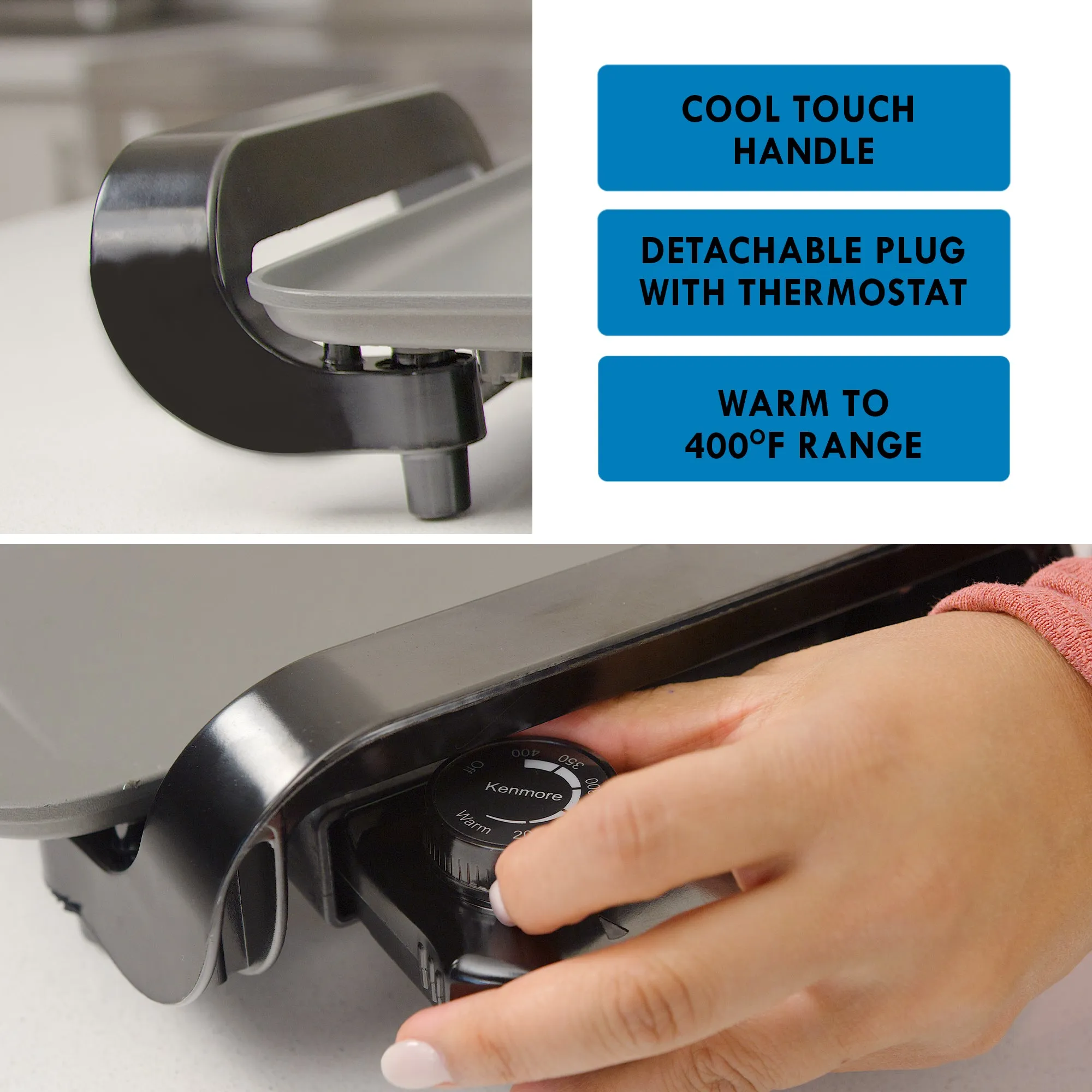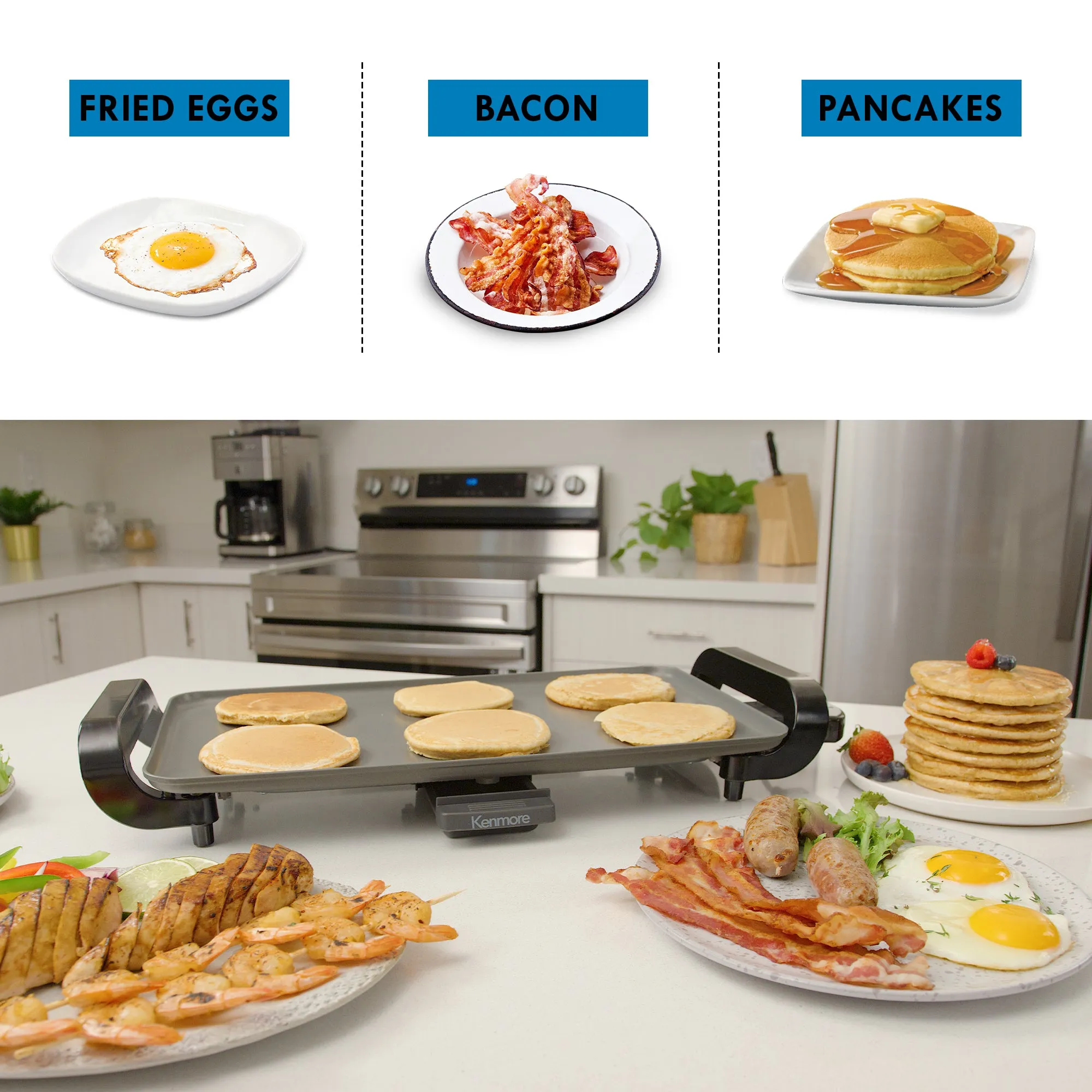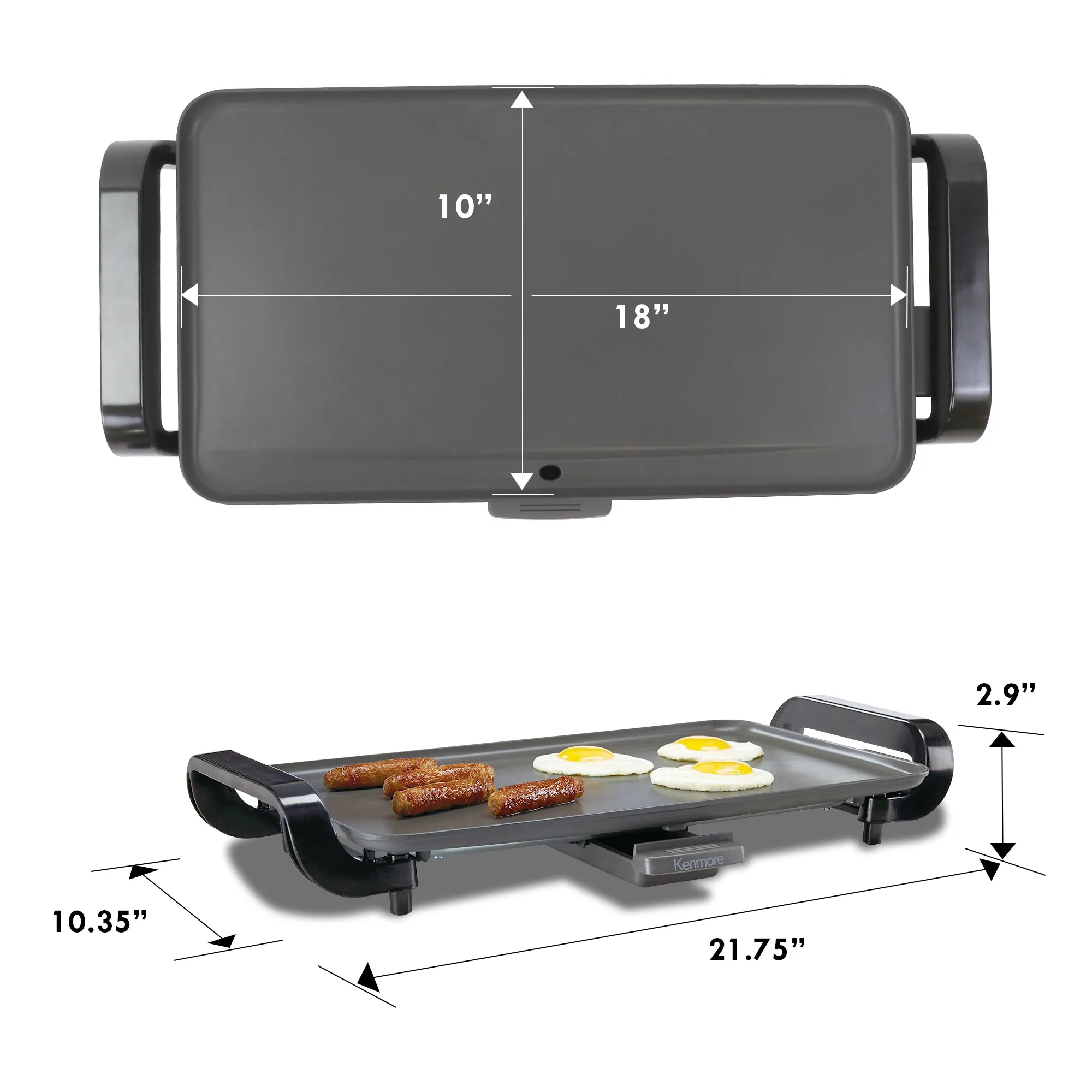Kenmore Non-Stick Electric Griddle with Removable Drip Tray, Black, 10" x 18" Cooking Surface, Compact Countertop Cooking, Grill, Sauté, Fry