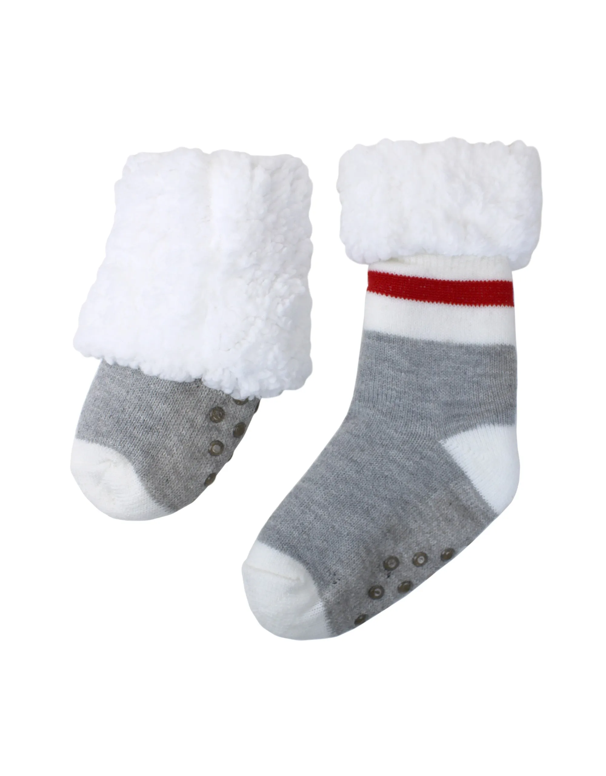 Our adorable variety of kids slipper socks are perfect for keeping cozy through the colder seasons! They come with antiskid grippers to prevent slipping and keep their tiny toes warm with lush sherpa inner lining. Perfect for sipping hot chocolate in!