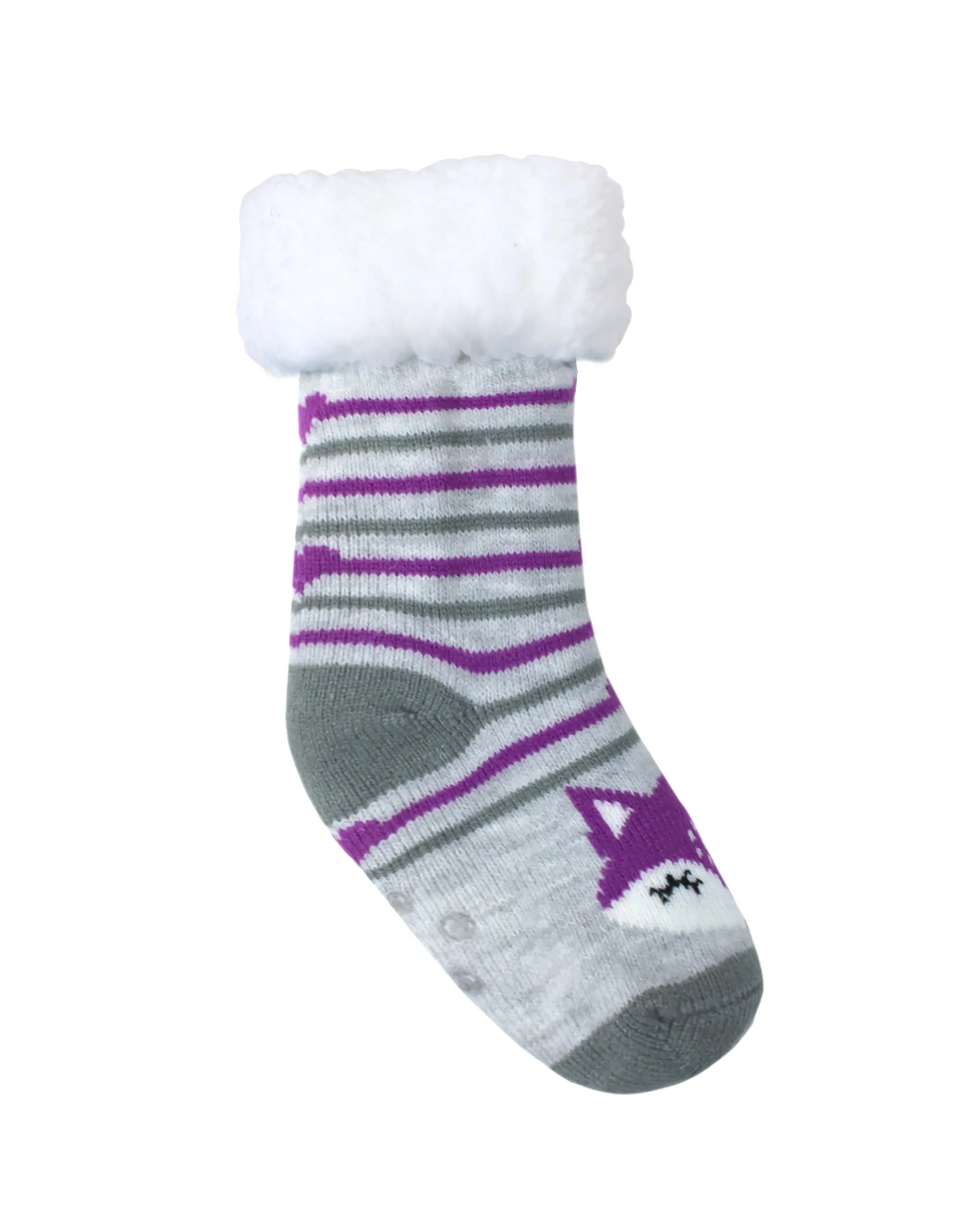 Our adorable variety of kids slipper socks are perfect for keeping cozy through the colder seasons! They come with antiskid grippers to prevent slipping and keep their tiny toes warm with lush sherpa inner lining. Perfect for sipping hot chocolate in!