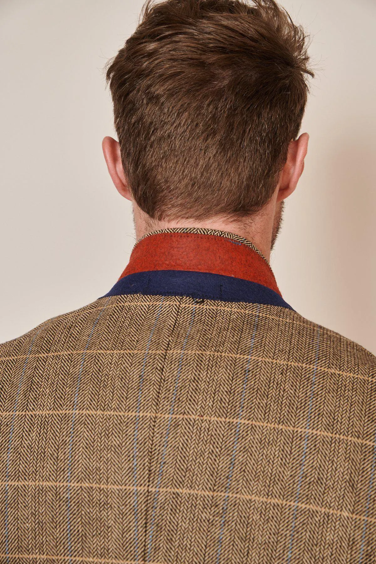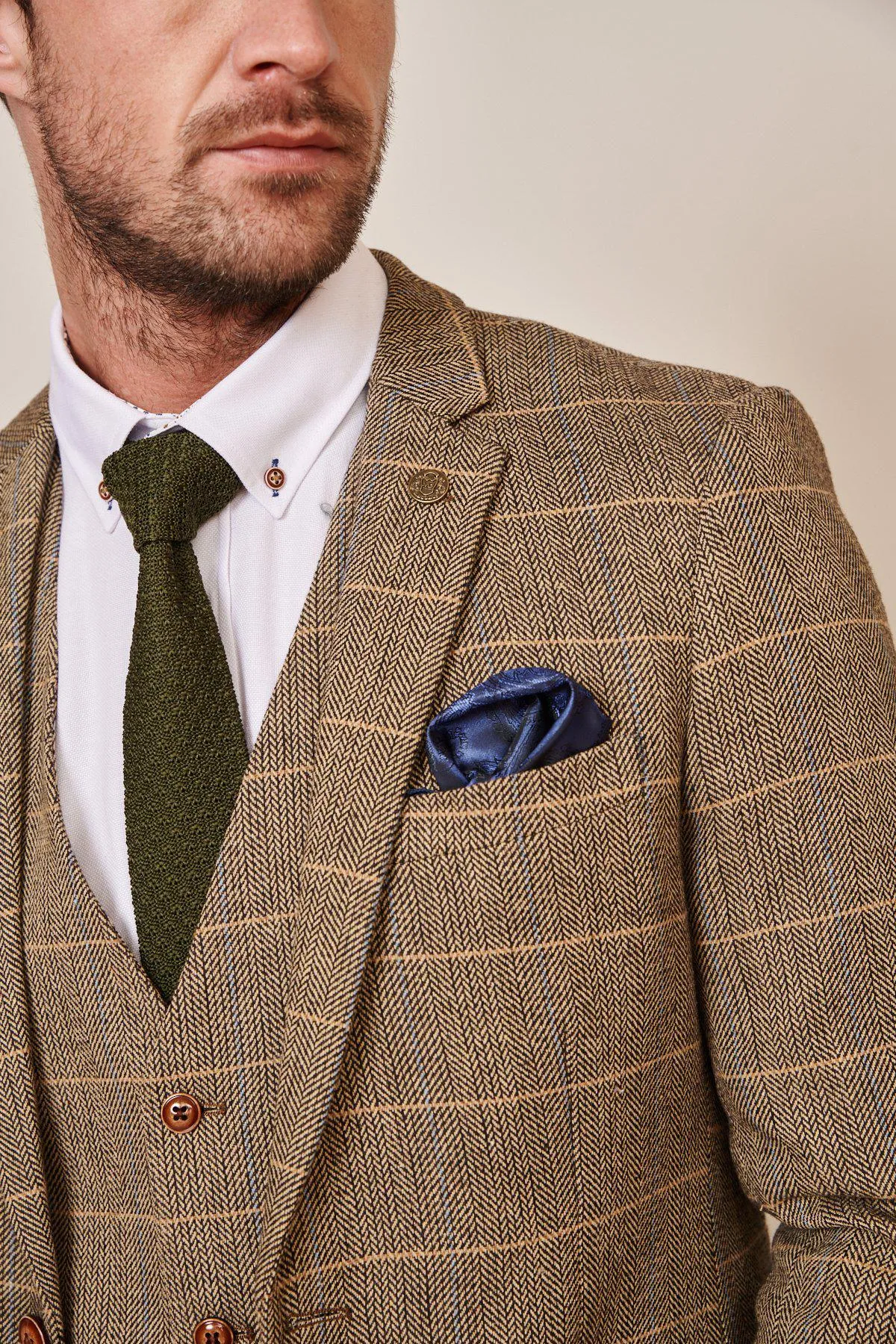 Crafted with heritage inspired wool-mix cloth, this Ted blazer and waistcoat adopt a herringbone weave in earthy tones and works beautifully for a day at the races.