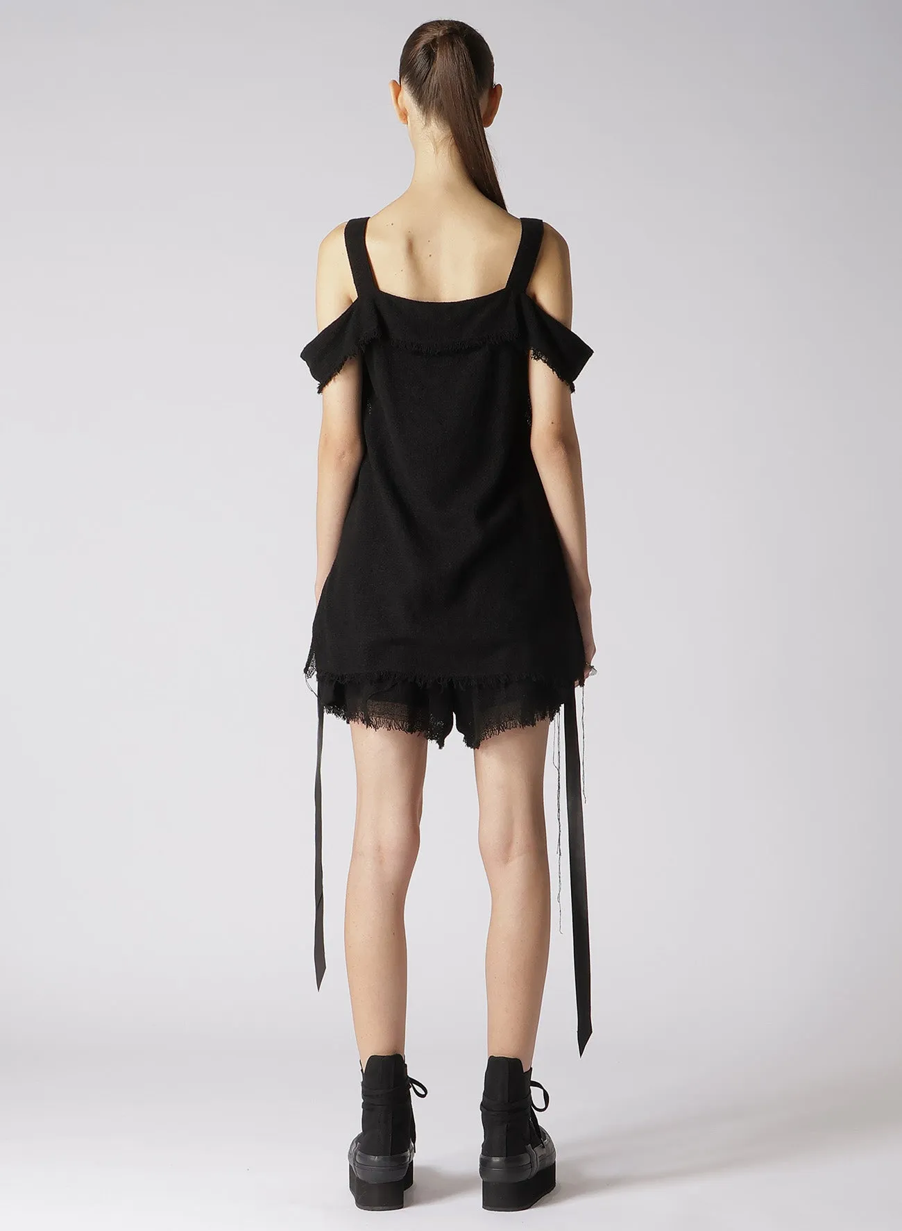 This Karami blouse blends rayon's sheen and drapery with linen's natural texture and breathability. The unique weave and product wash yield a refined rag-like look, with each piece having slight variations. Designed for summer with shoulder straps that pair well with a vest, creating a textural outfit.