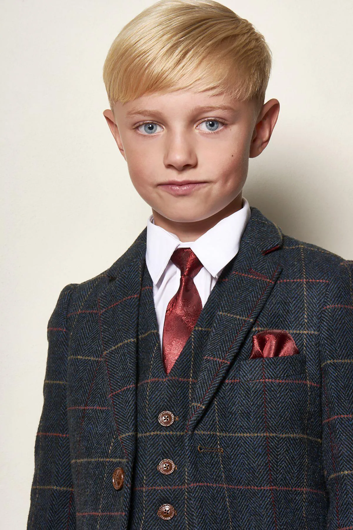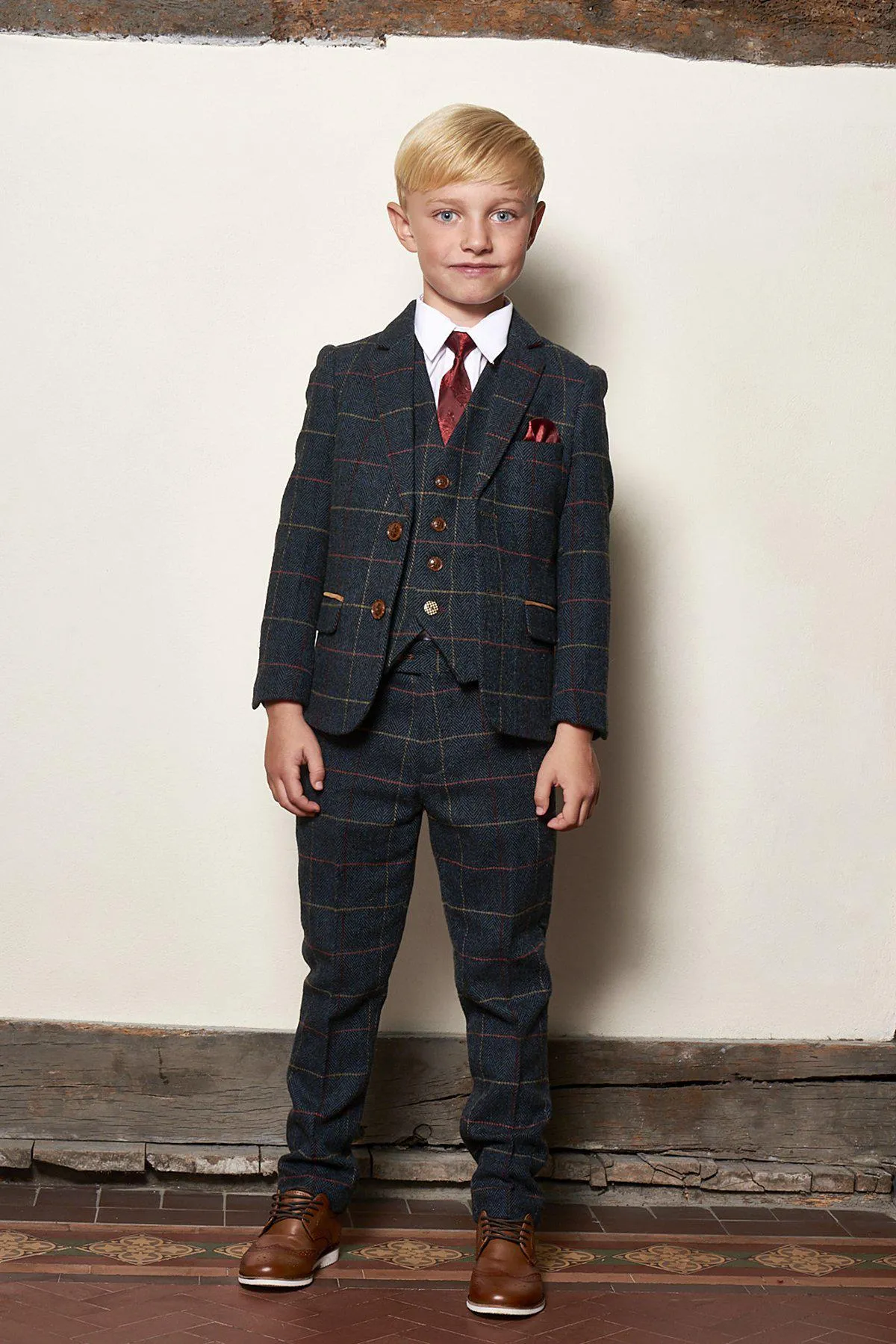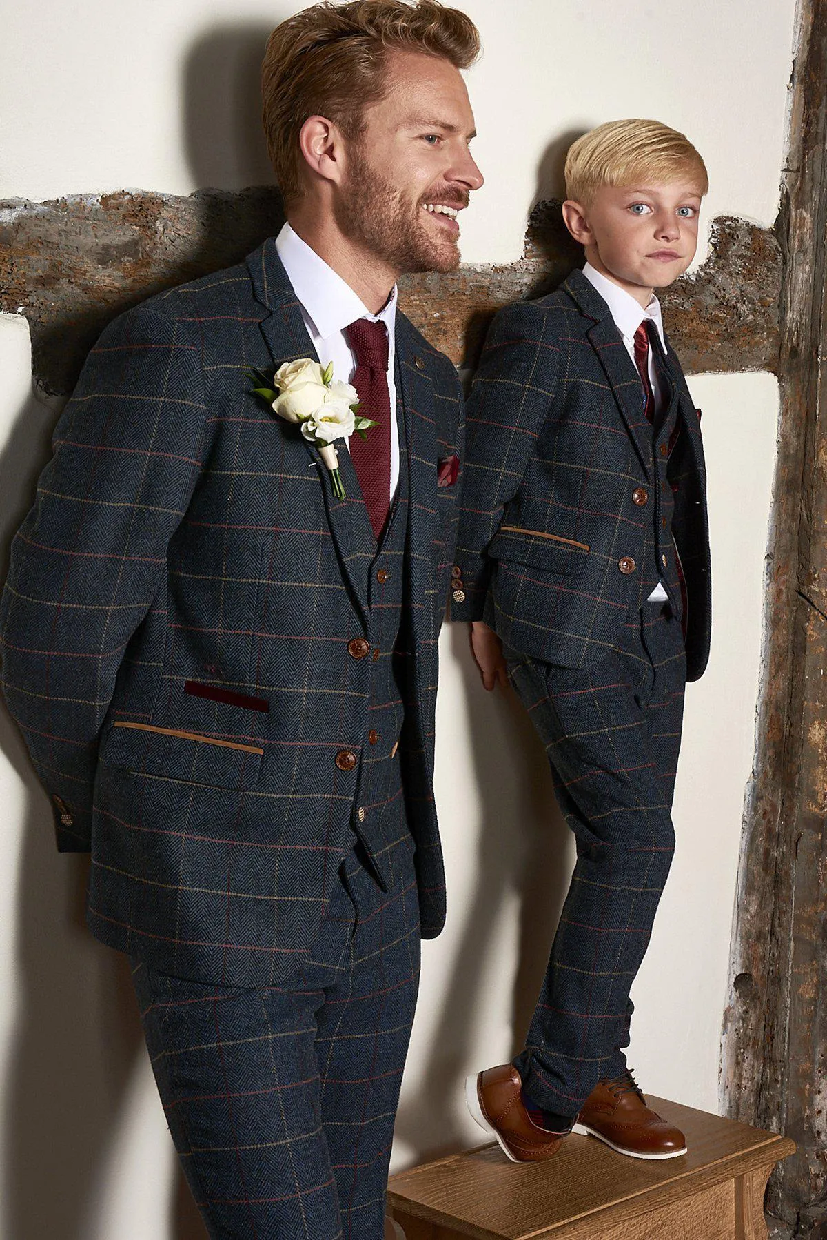Earn double the style points with this matching Father & son tweed suit! Max out on tweed and check with the Eton three piece suit. A timeless design with both vintage appeal and practicality. Created using a herringbone weave of rich wool mix material, this suit will keep you well insulated and will successfully stand the test of time. Ideal forcountry barn weddings.
