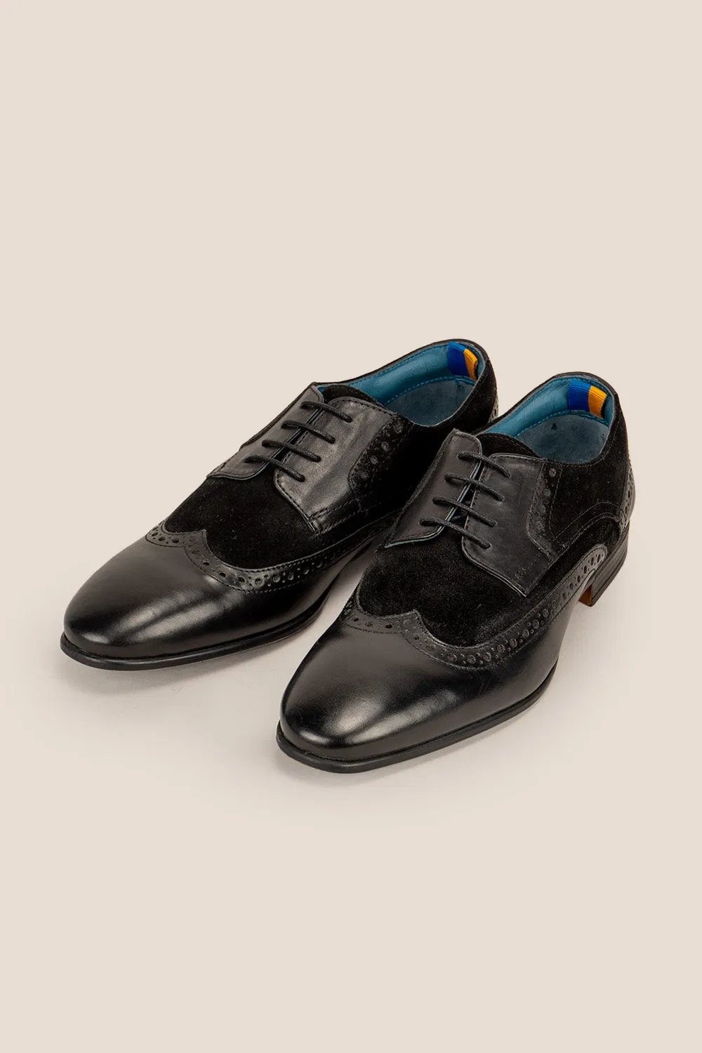 Miles Black deftly mends brogues with a luxurious combination of leather and suede, exuding timeless elegance. Crafted with utmost attention to detail, they are an exquisite addition to any discerning wardrobe.