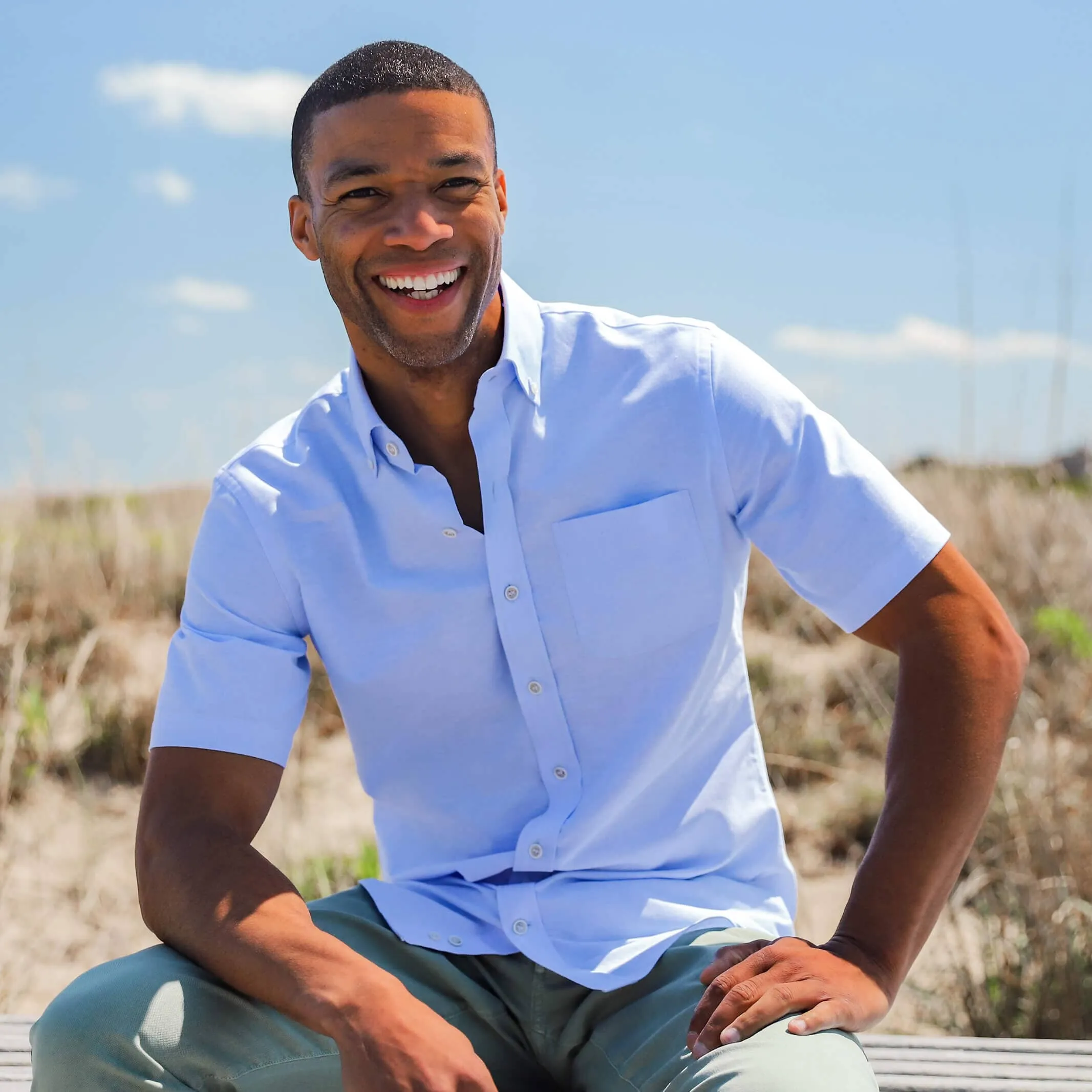 The Light Blue Short Sleeve Mayfield Oxford Custom Shirt