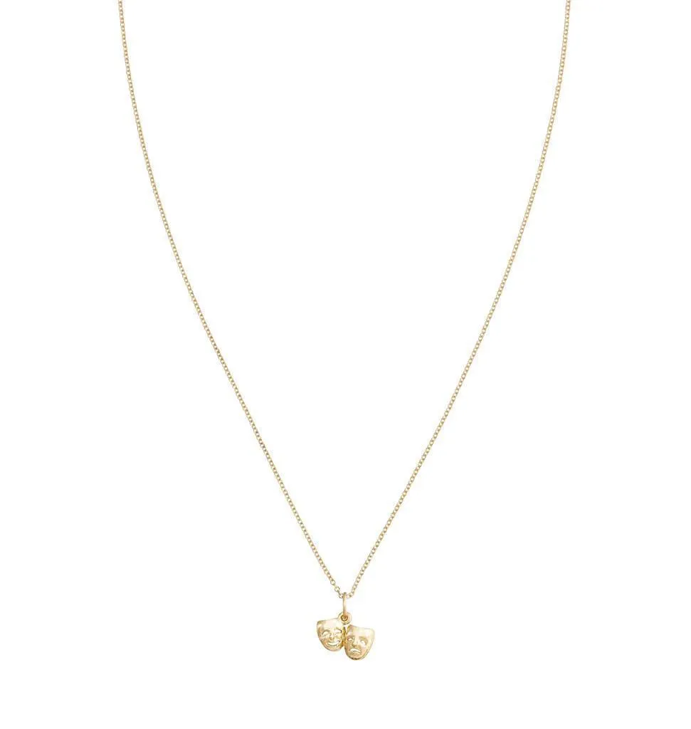 Helen's Theater Masks Mini Charm lovingly crafted in New York. Made With Solid 14k Gold. Size 15.8mm X 13.5mm Gift Wrapped. Free Express Shipping.