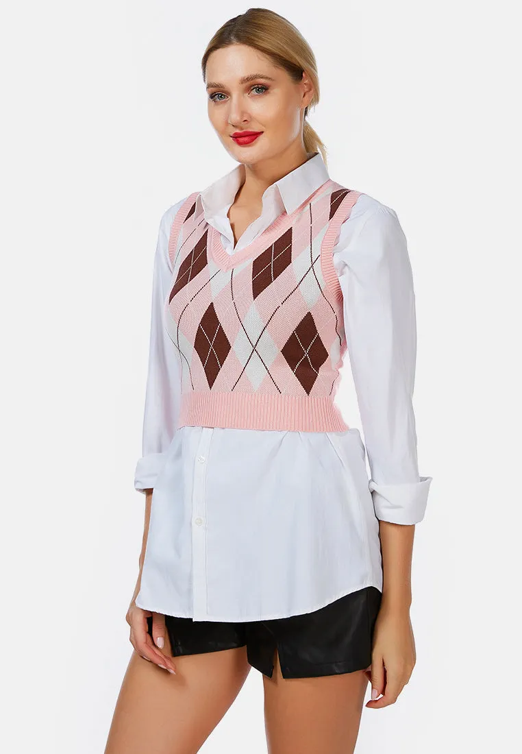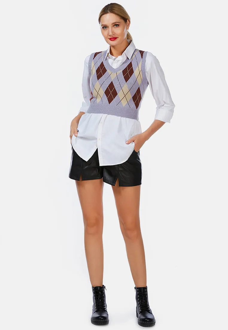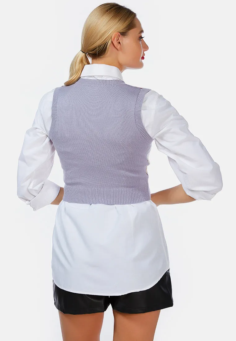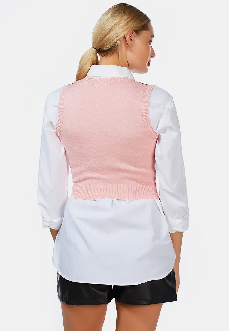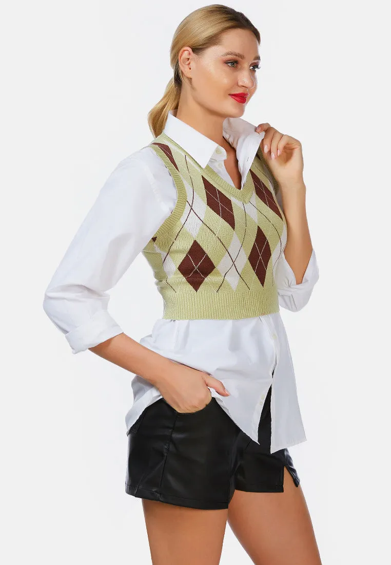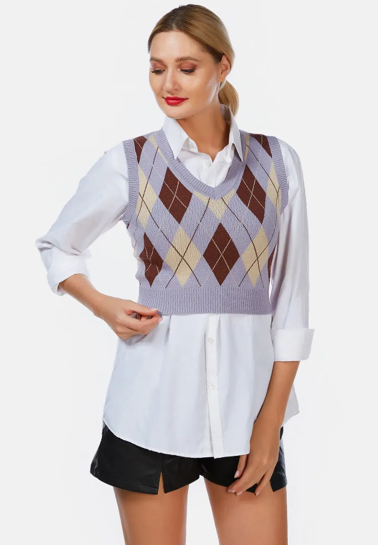 Sleeveless knitted vest in V neck with broad rib-knit armhole and hem imparts flexibility and stability to the garment. Keeps warm and cozy when the mercury drops. Comes in an array of colors to choose from.