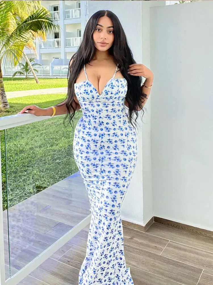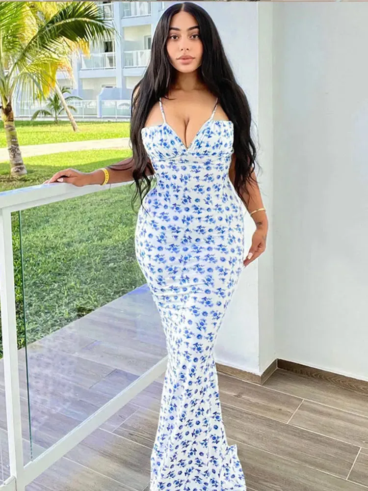 Women Elegant Floral Vacation Streetwear Clothes Midi Dresses