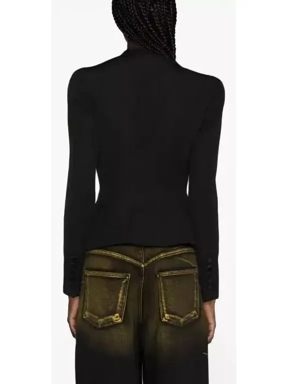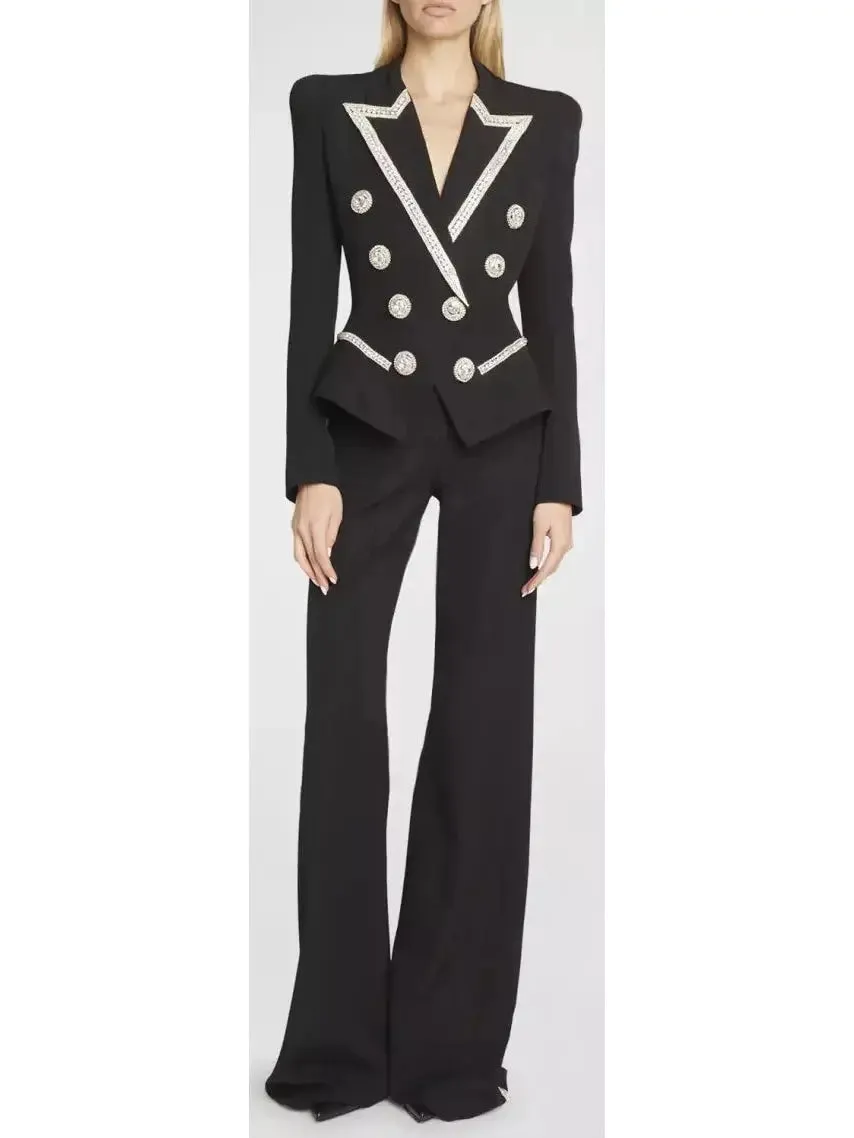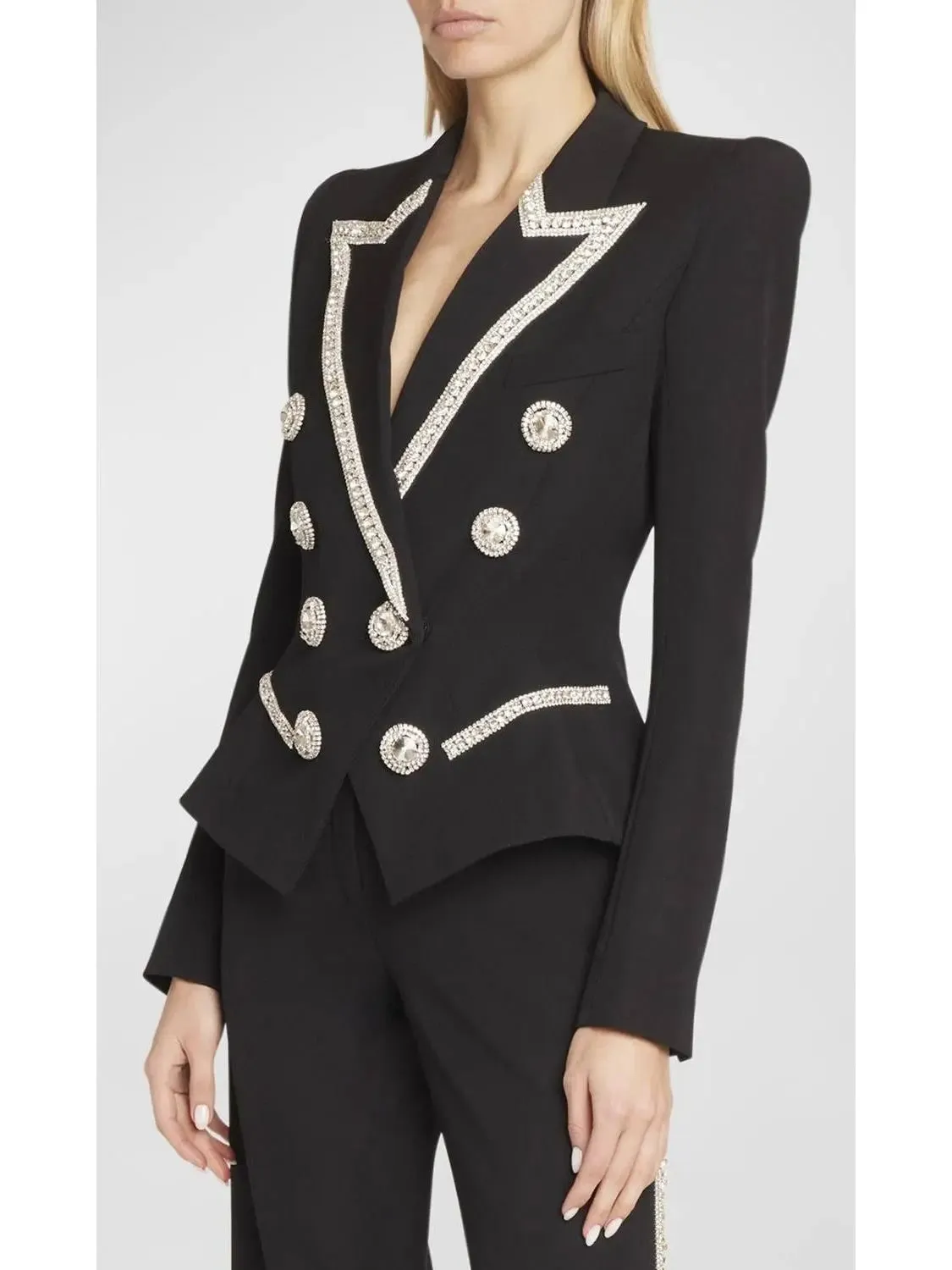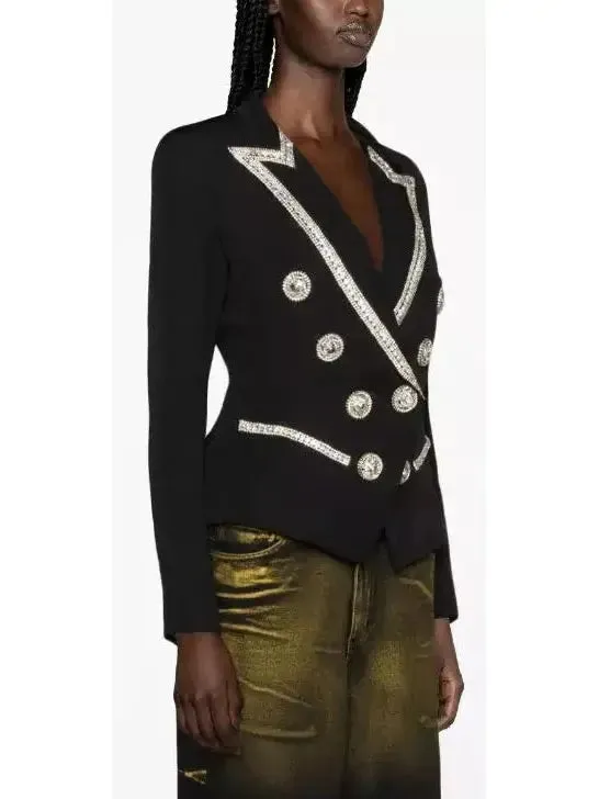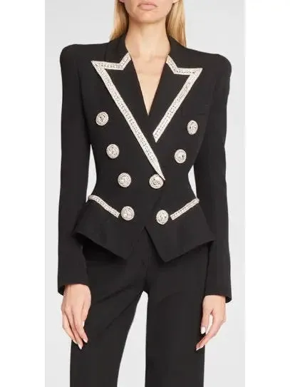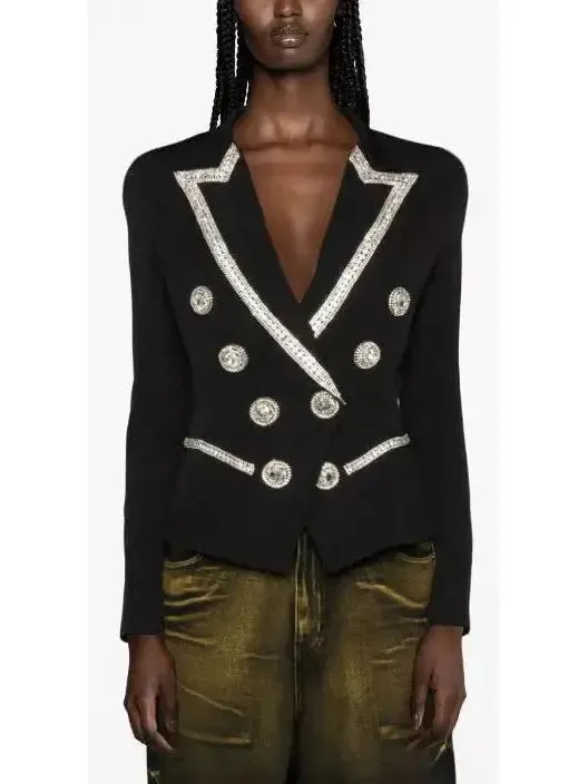 Expertly crafted for a polished look, this double-breasted jacket is embellished with intricate details for added elegance. Made with high-quality materials, this jacket offers a timeless style that will enrich any outfit. Perfect for both formal and casual occasions, it's a must-have addition to any wardrobe.