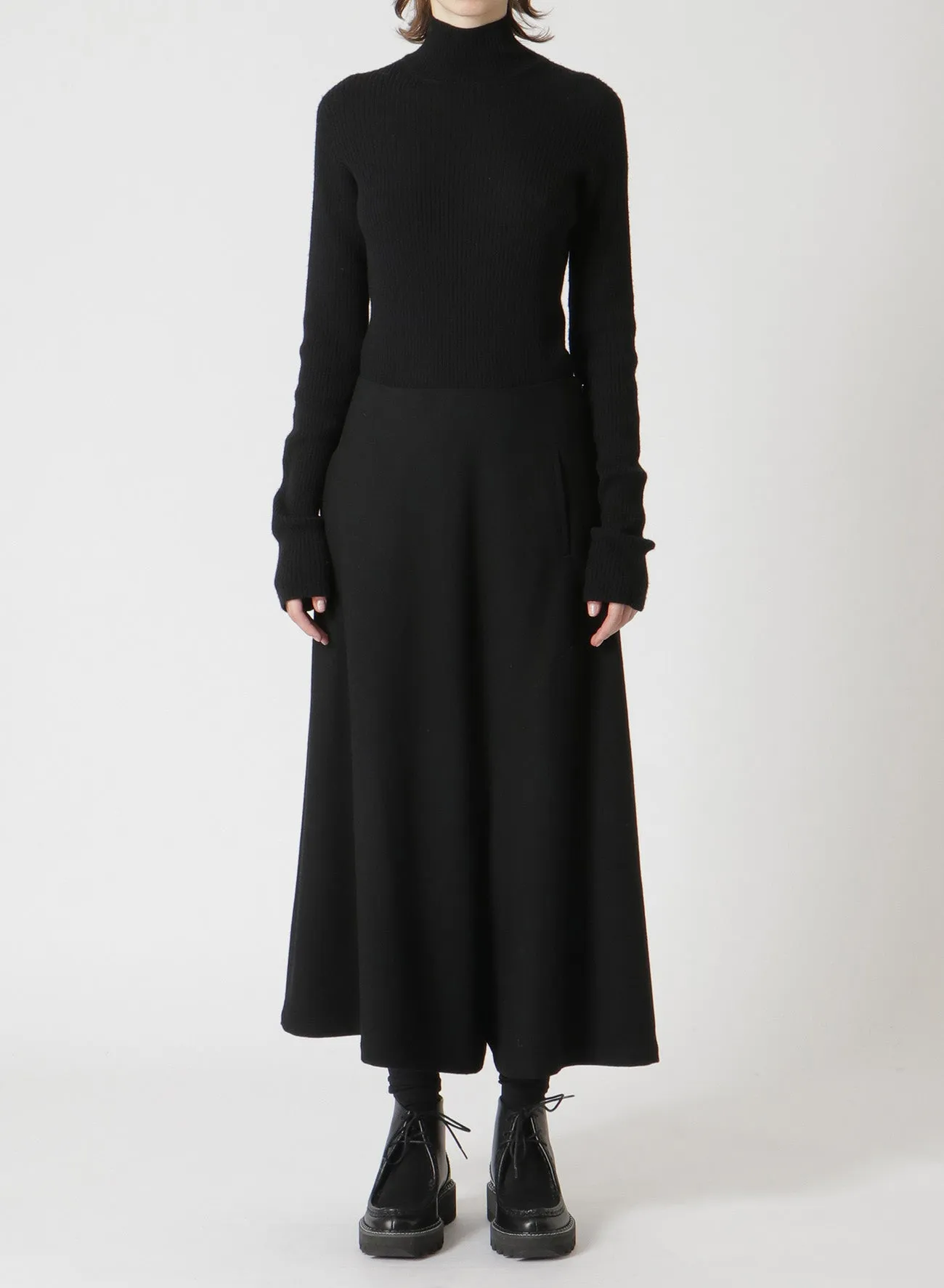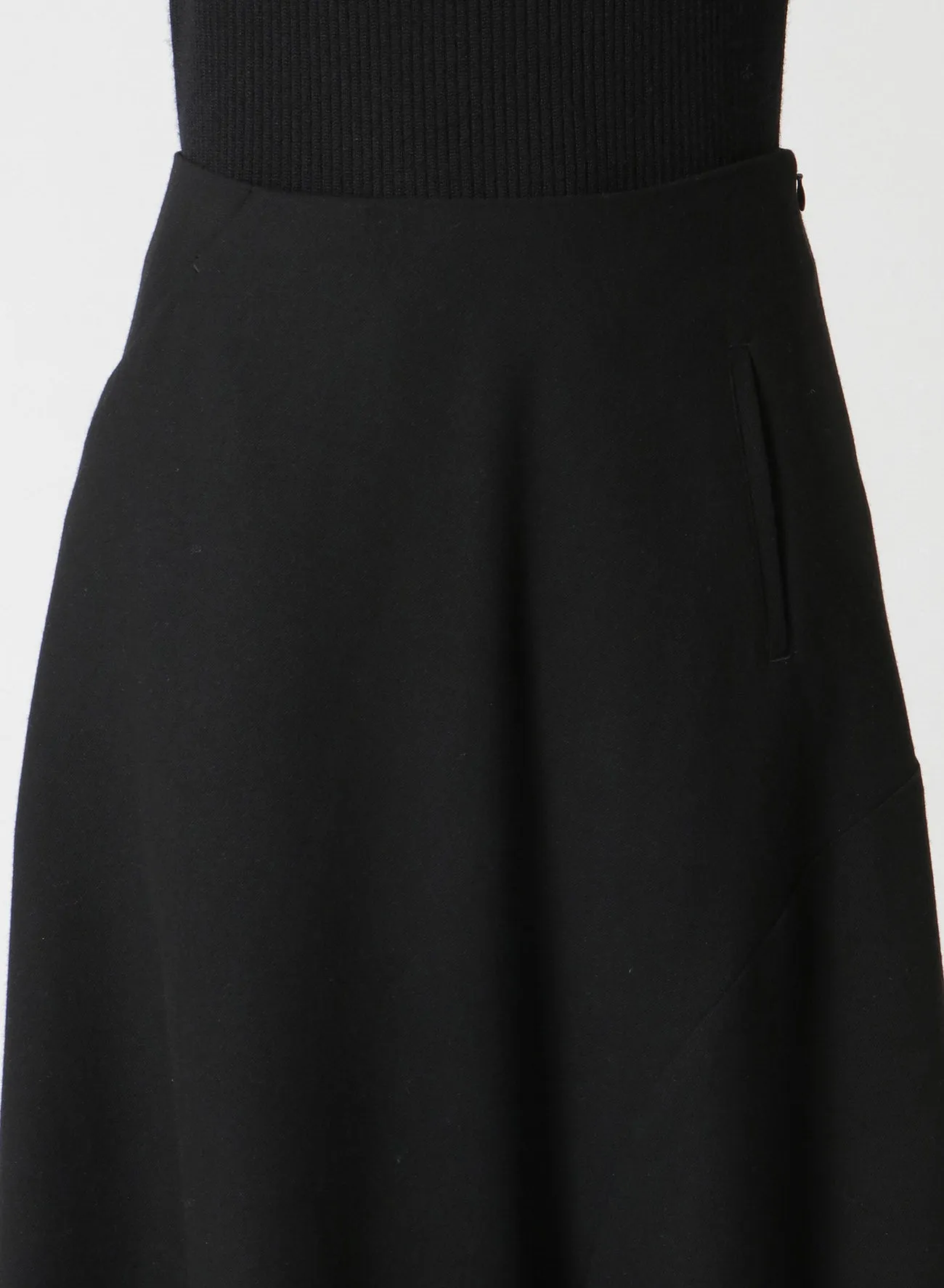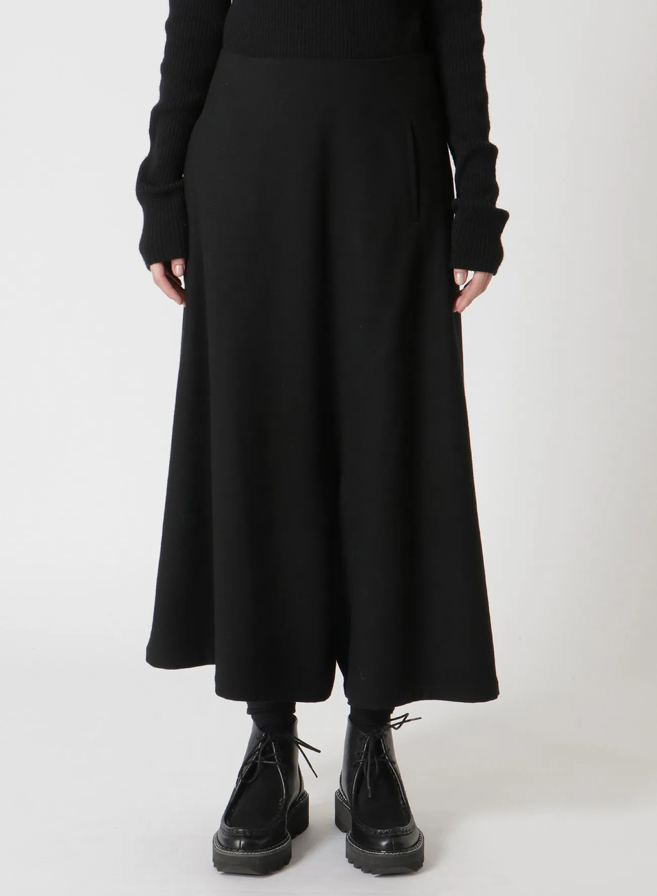 A skirt-pants made from soft wool flannel material, featuring a milled finish for a delicate texture. The asymmetric hem showcases Y's unique design philosophy from a clean waistline to a gently expanding silhouette towards the hem, creating a balance between simplicity and thoughtful detailing.