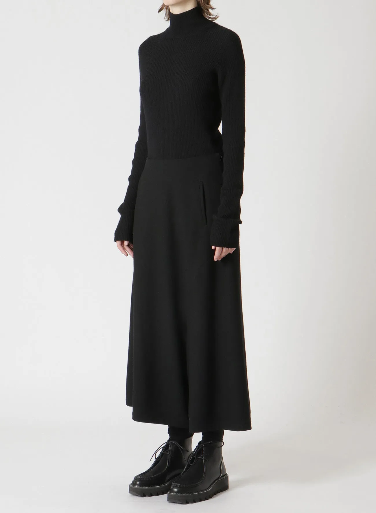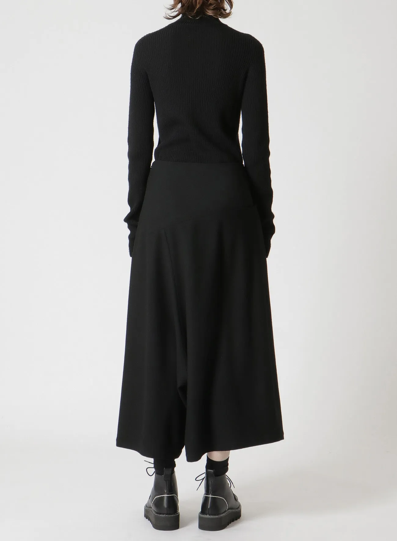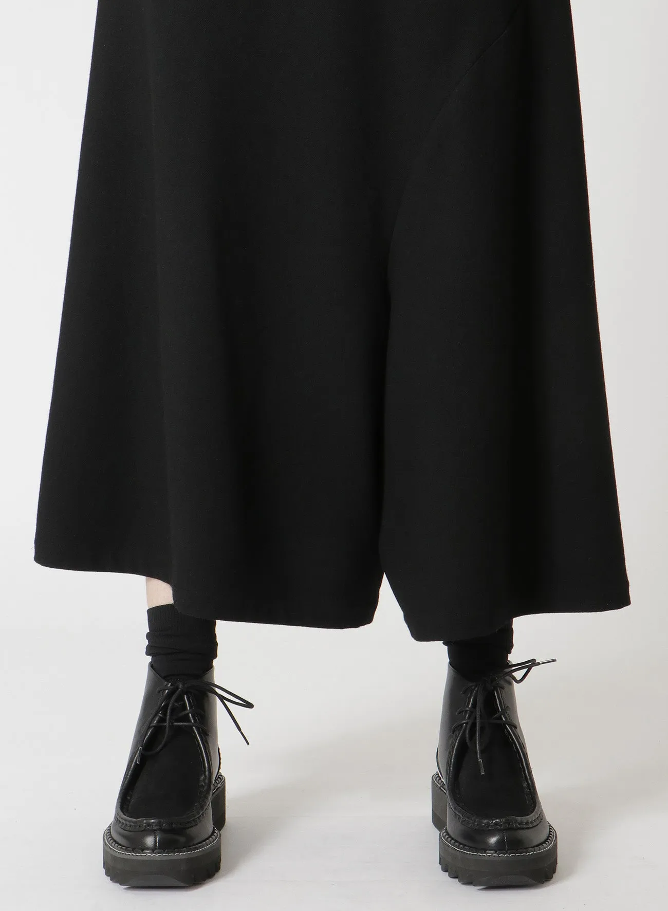 A skirt-pants made from soft wool flannel material, featuring a milled finish for a delicate texture. The asymmetric hem showcases Y's unique design philosophy from a clean waistline to a gently expanding silhouette towards the hem, creating a balance between simplicity and thoughtful detailing.